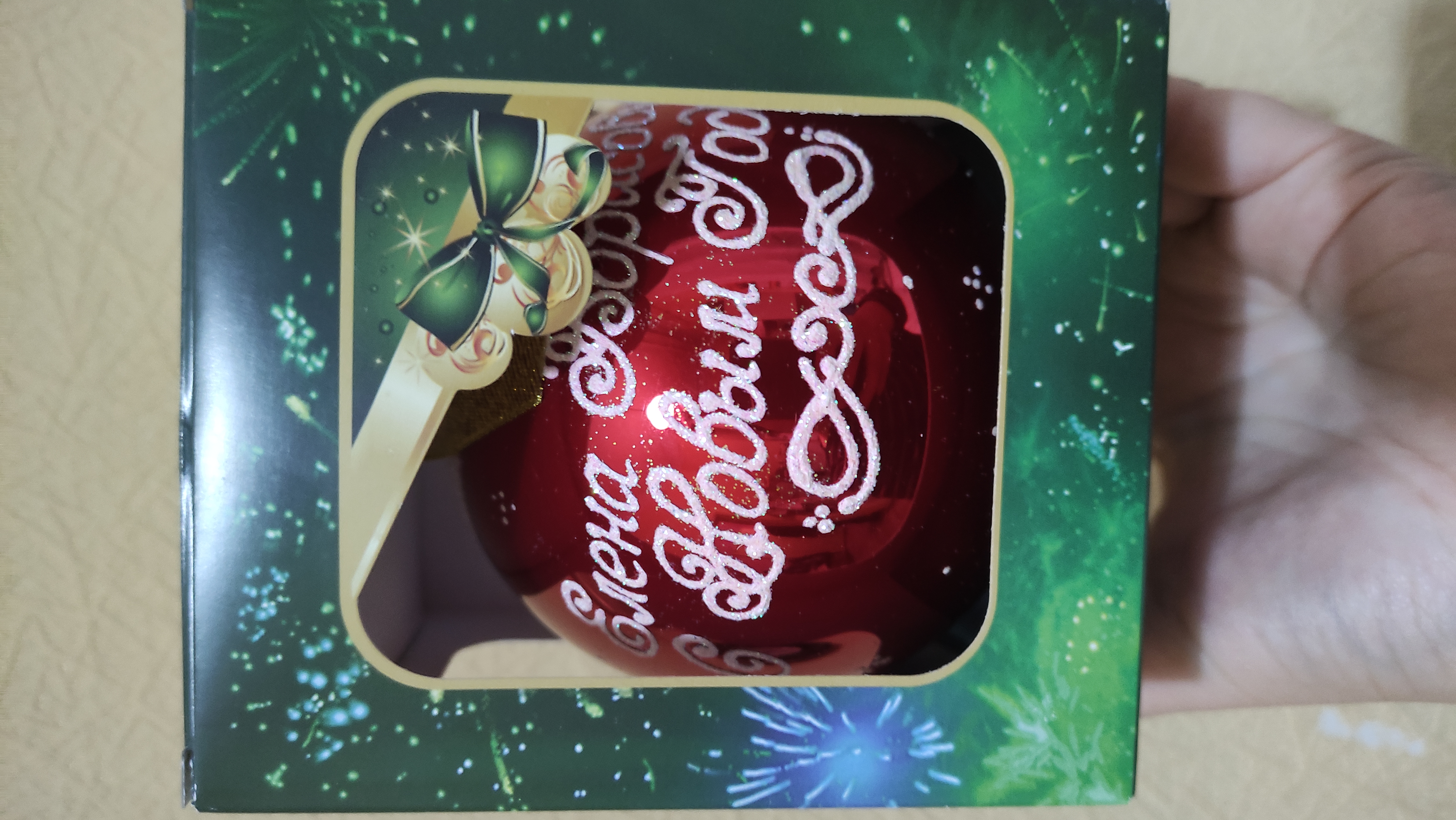 СТЕКЛЯННЫЙ ёлочный шар с пожеланием, диаметр 100 мм  (в коробке)