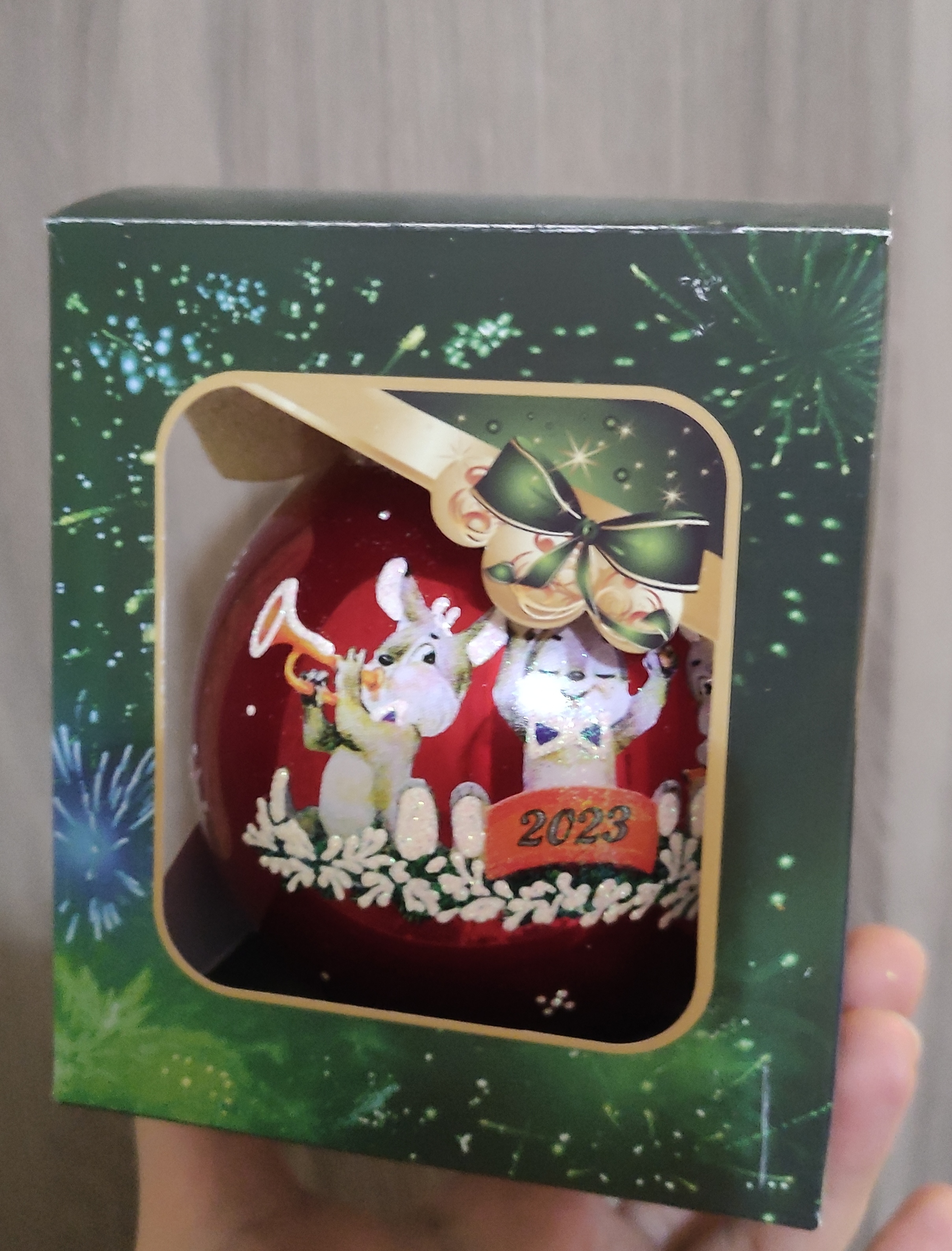СТЕКЛЯННЫЙ ёлочный шар с пожеланием, диаметр 85 мм  (в коробке)