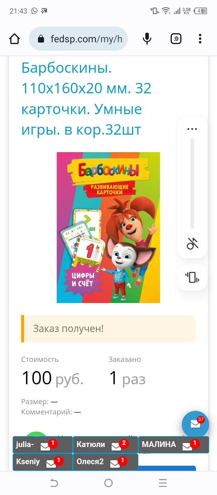 😍 ГРУППА В ТЕЛЕГРАМ!😍 https://t.me/Lonza_sp Открытие закупок, хиты, новинки! Быстрые ответы на ваши вопросы ПРИСОЕДИНЯЙТЕСЬ ОПЛАТА ЧЕРЕЗ ЭКВАЙРИНГ ОБНУЛЯЕТСЯ МГНОВЕННО и АВТОМАТИЧЕСКИ! цена удобства – комиссия Т-Банка за эквайринг 2,4%! при оплате комиссия спишется автоматически В ЗАКУПКЕ ПРЕДСТАВЛЕНА РАСПРОДАЖА И БРАК УПАКОВКИ (артикул заканчивается на УЦ). БРАК УПАКОВКИ МОЖЕТ БЫТЬ КАК ОЧЕНЬ НЕЗНАЧИТЕЛЬНЫМ - ЗАМЯТ УГОЛОК КОРОБКИ, ТАК И ФАТАЛЬНЫМ - ПОЛНОСТЬЮ ПОВРЕЖДЕНА УПАКОВКА. ВТОРОЙ ВАРИАНТ ВСТРЕЧАЕТСЯ КРАЙНЕ РЕДКО. ОБРАЩАЙТЕ ВНИМАНИЕ НА НАЛИЧИЕ - ОЧЕНЬ ЧАСТО ВСЕ ПО 1 ШТ - если в галерее артикул с надписью " в ассортименте", то придет игрушка нужного артикула, но вид может отличаться, это пристрой участника - пересорт по цвету/виду - пристрой участника - транспортные согласно правилам СП - от участников с ШБ заказы не принимаю - работа с браком по правилам СП