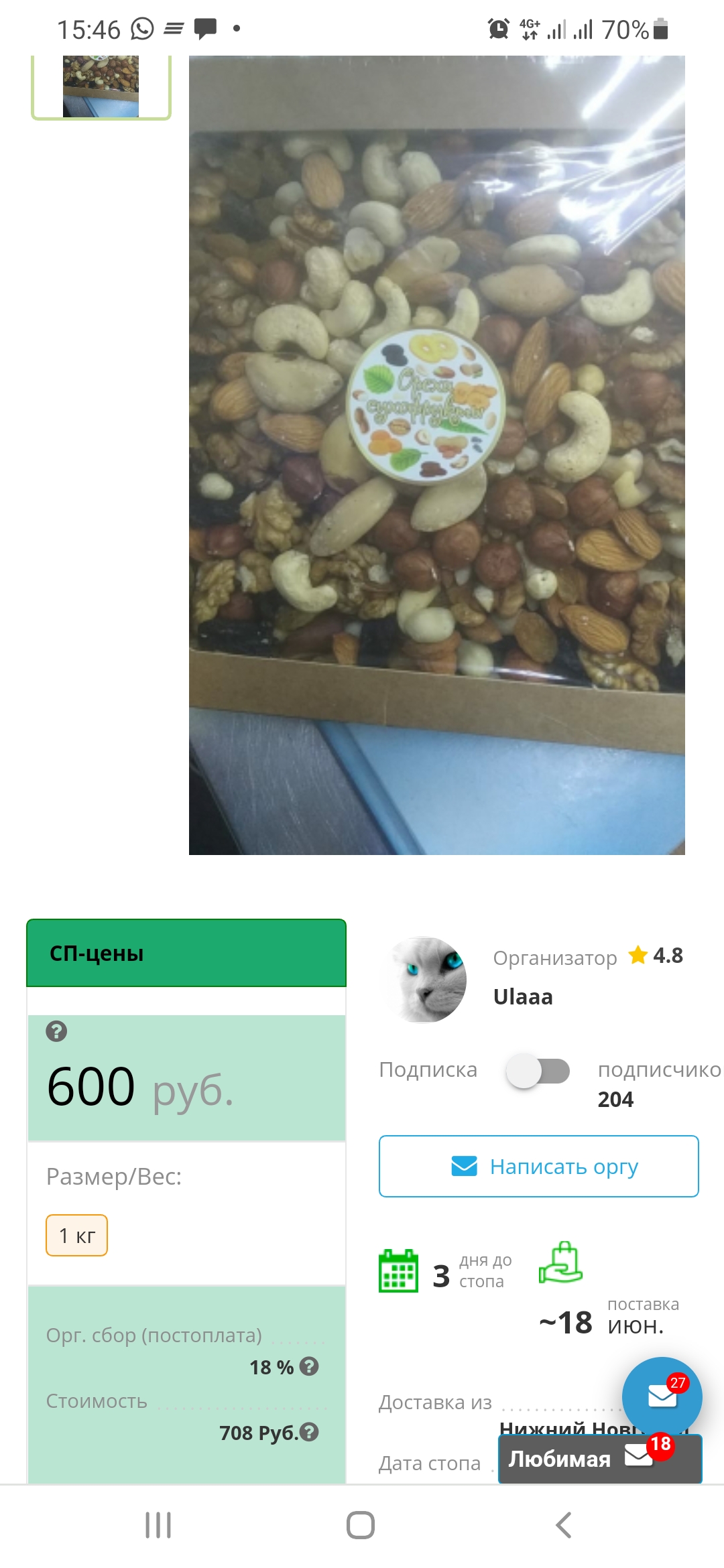 Товары в наличии у организатора Совместных Покупок Ulaaa