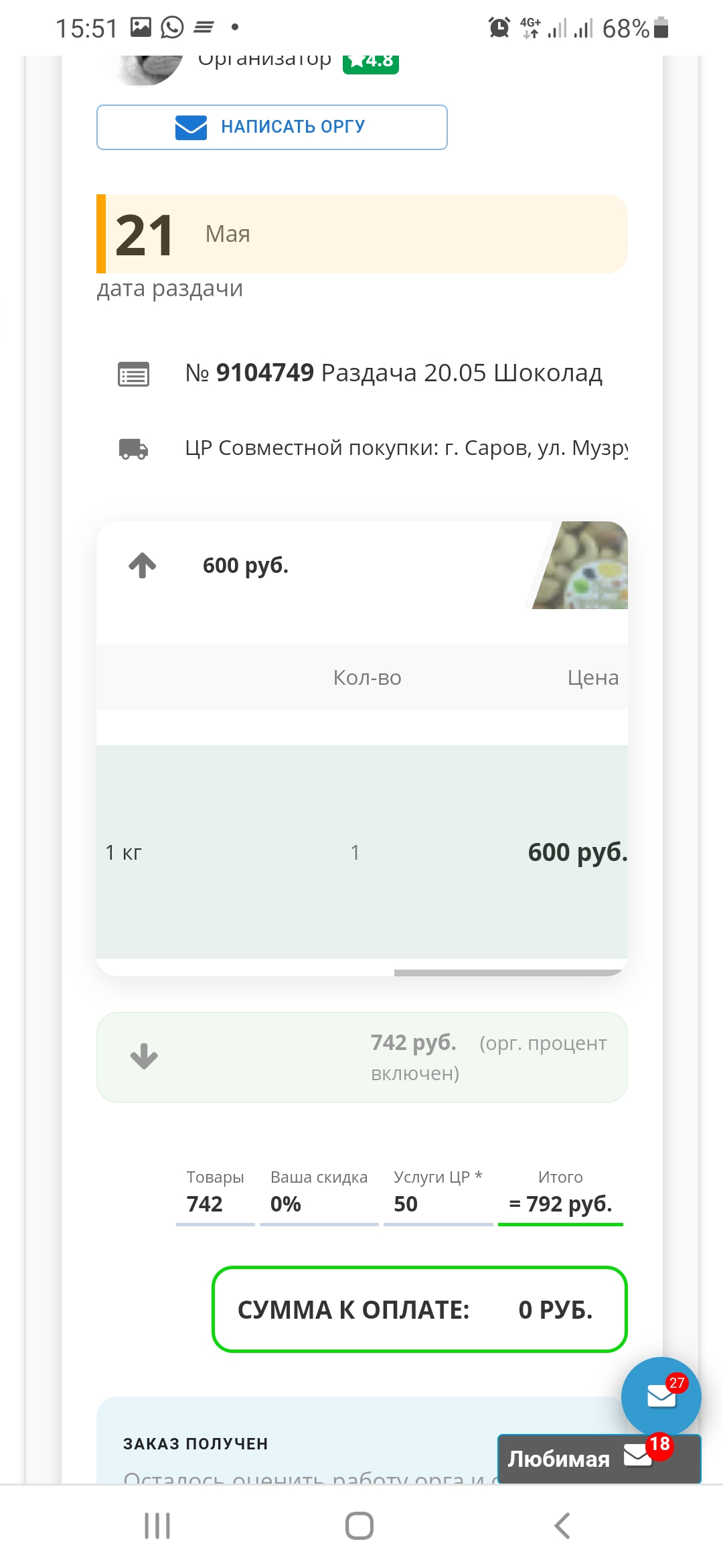 Ваши данные (имя и телефон) прошу присылать в приват через кнопочку "написать оргу". Оплата заказа производится безналичным расчетом на карту, С новых участников или с участников со штрафными баллами могу попросить предоплату 30% от стоимости заказа. В закупке будут ТР