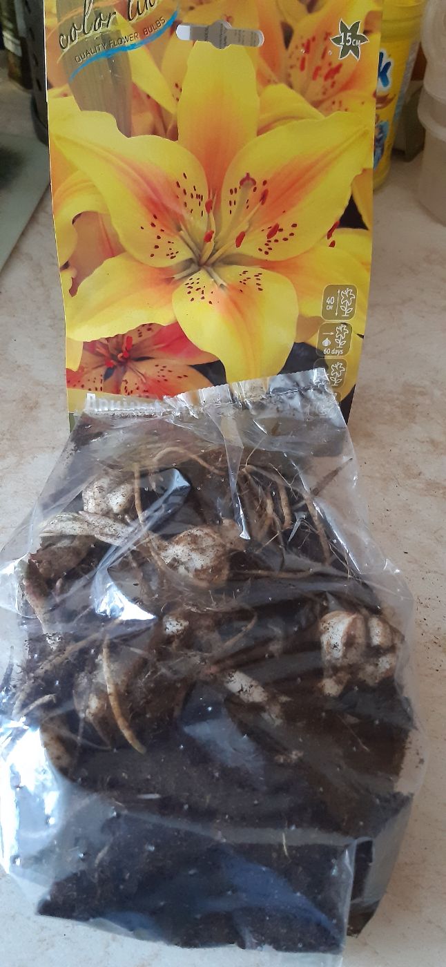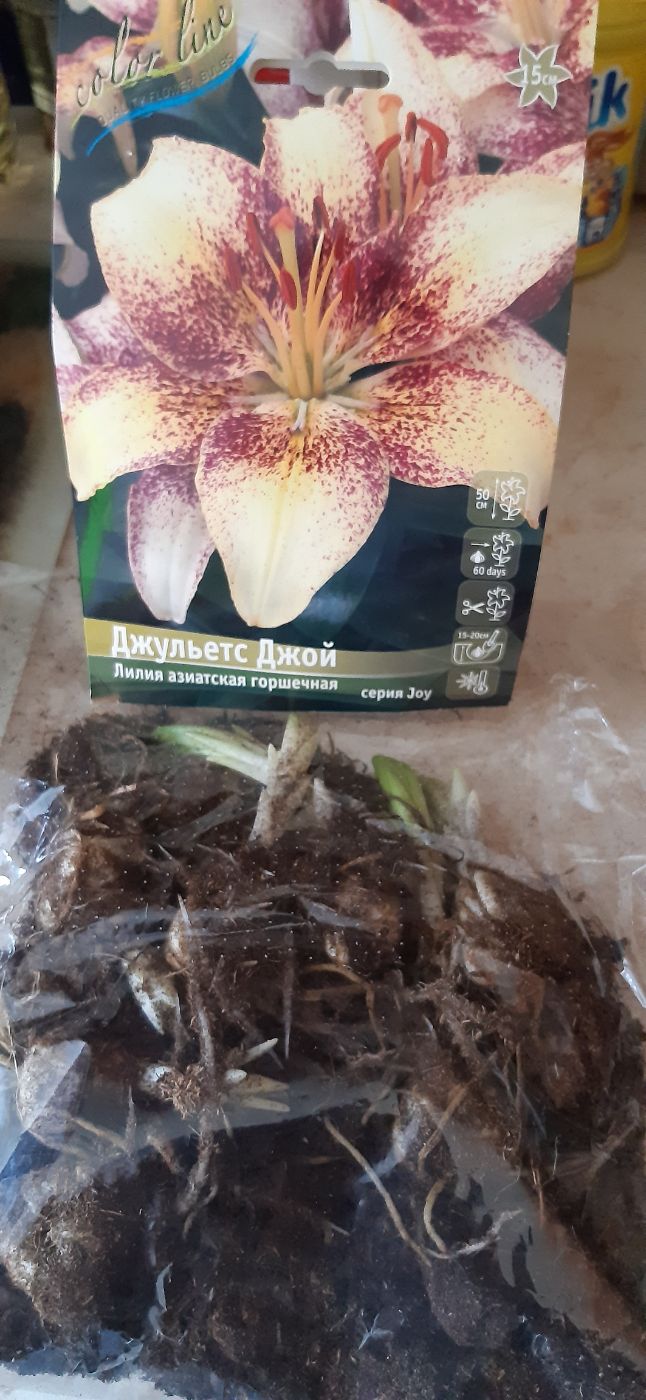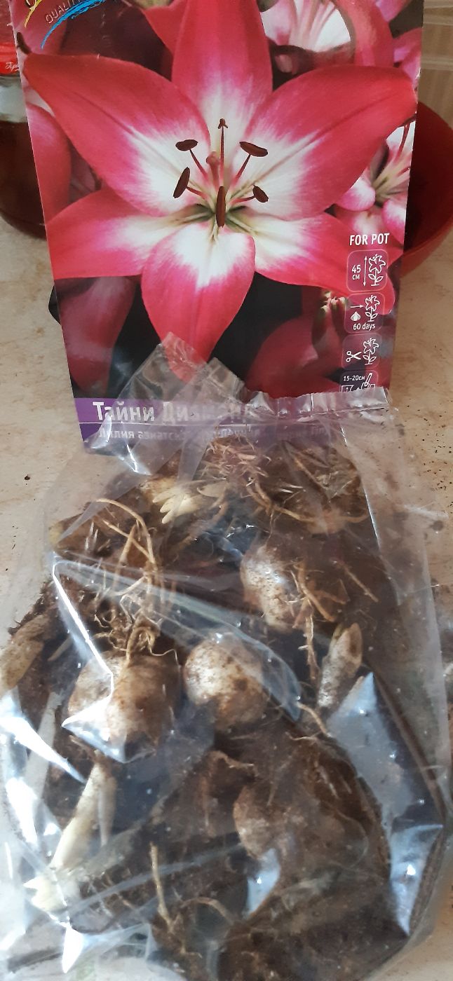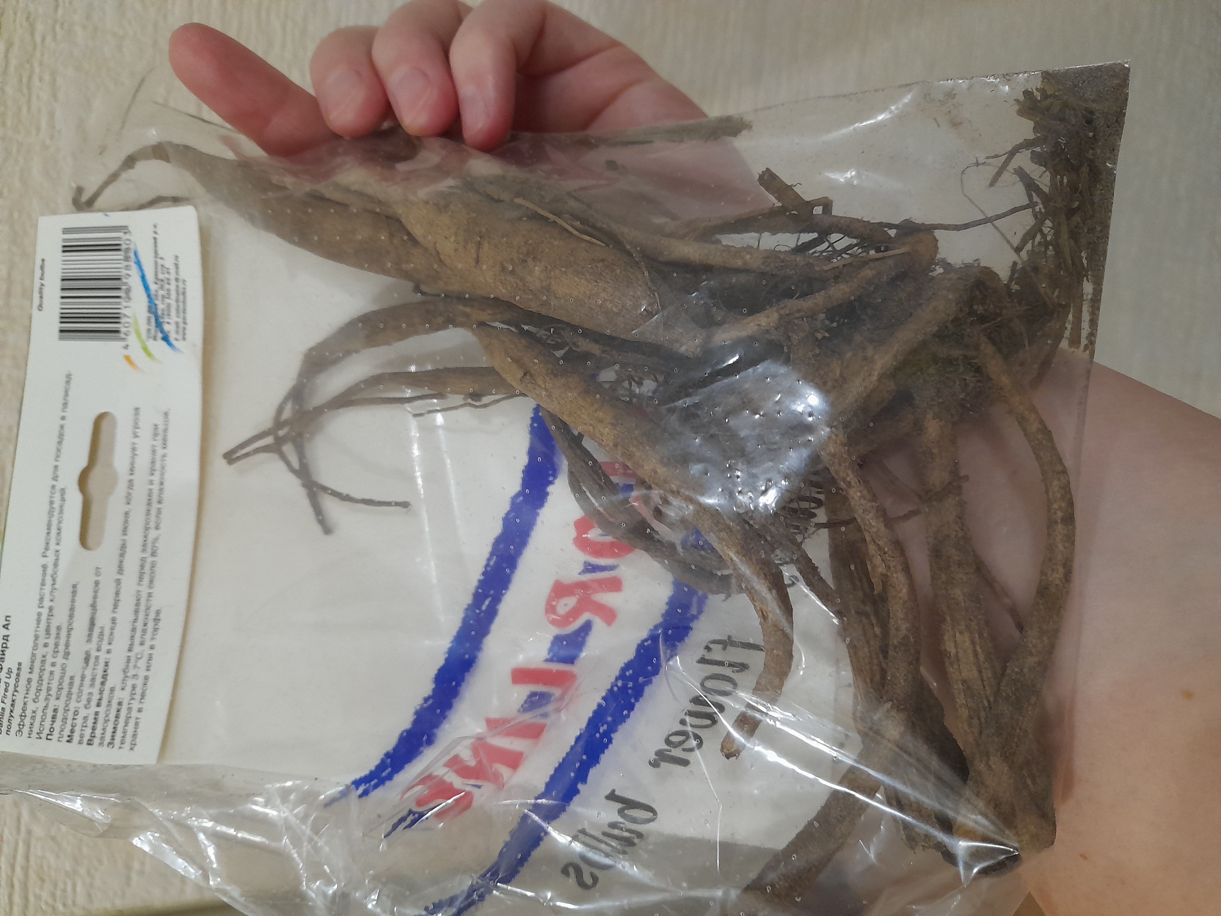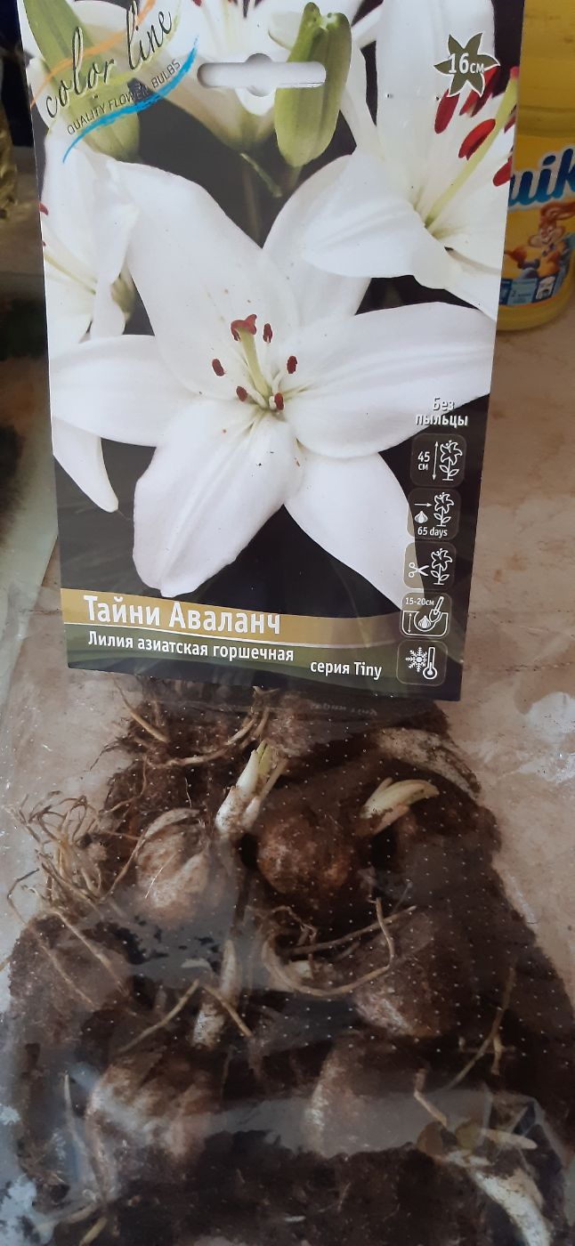 Луковички и корни в упаковках по 1, 2, 5, 7 или 10шт с цветной картинкой.
