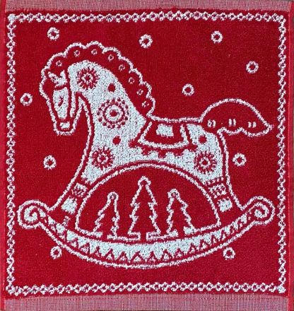 Салфетка махровая 33х33 Лошадка 7933 (отбелка/темно-красный)