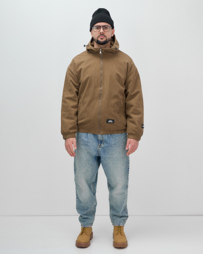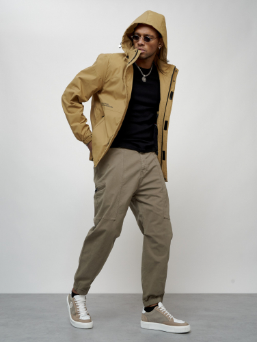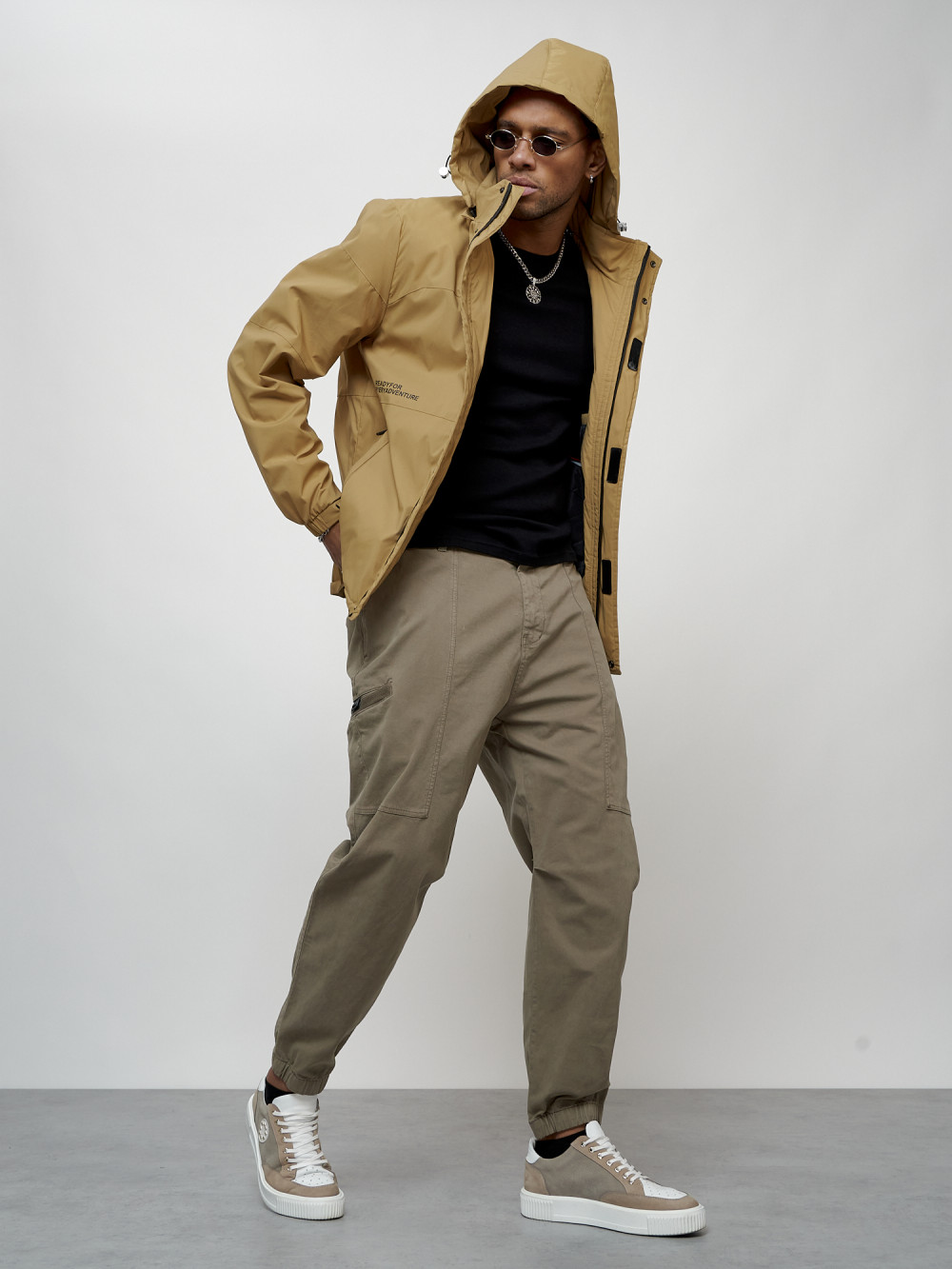 Куртка спортивная мужская весенняя с капюшоном бежевого цвета 88021B