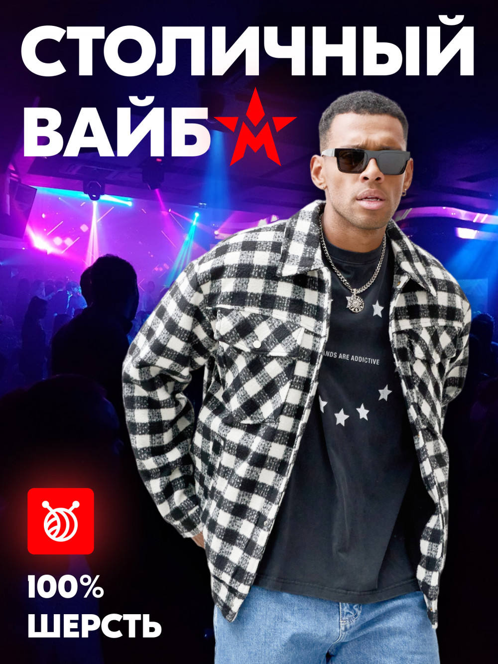 Куртка рубашка шерстяная в клетку мужская демисезонная черного цвета 58566Ch
