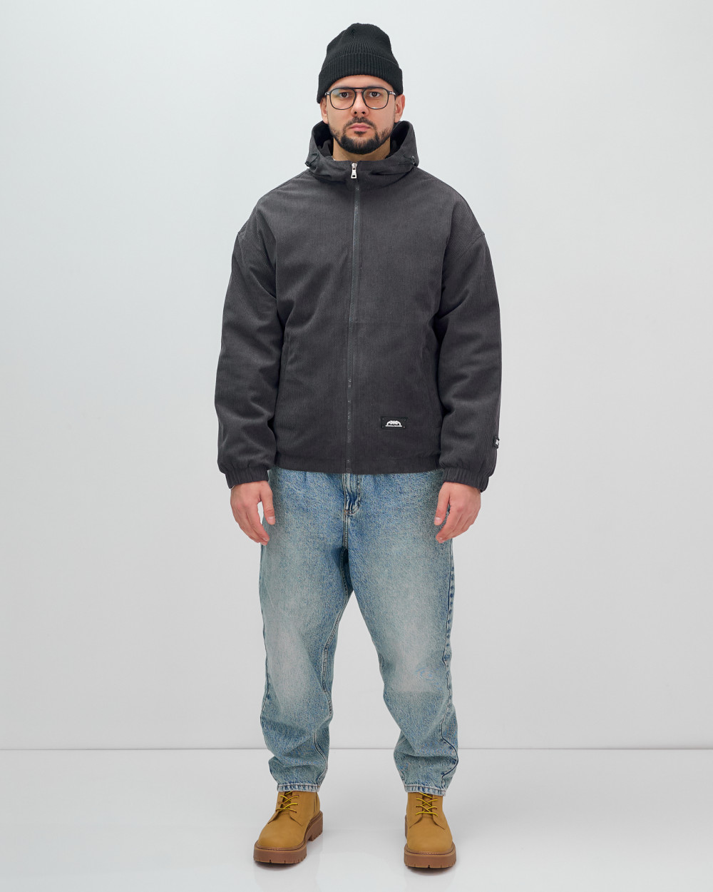 Куртка из вельвета мужская демисезонная темно-серого цвета 25336TC
