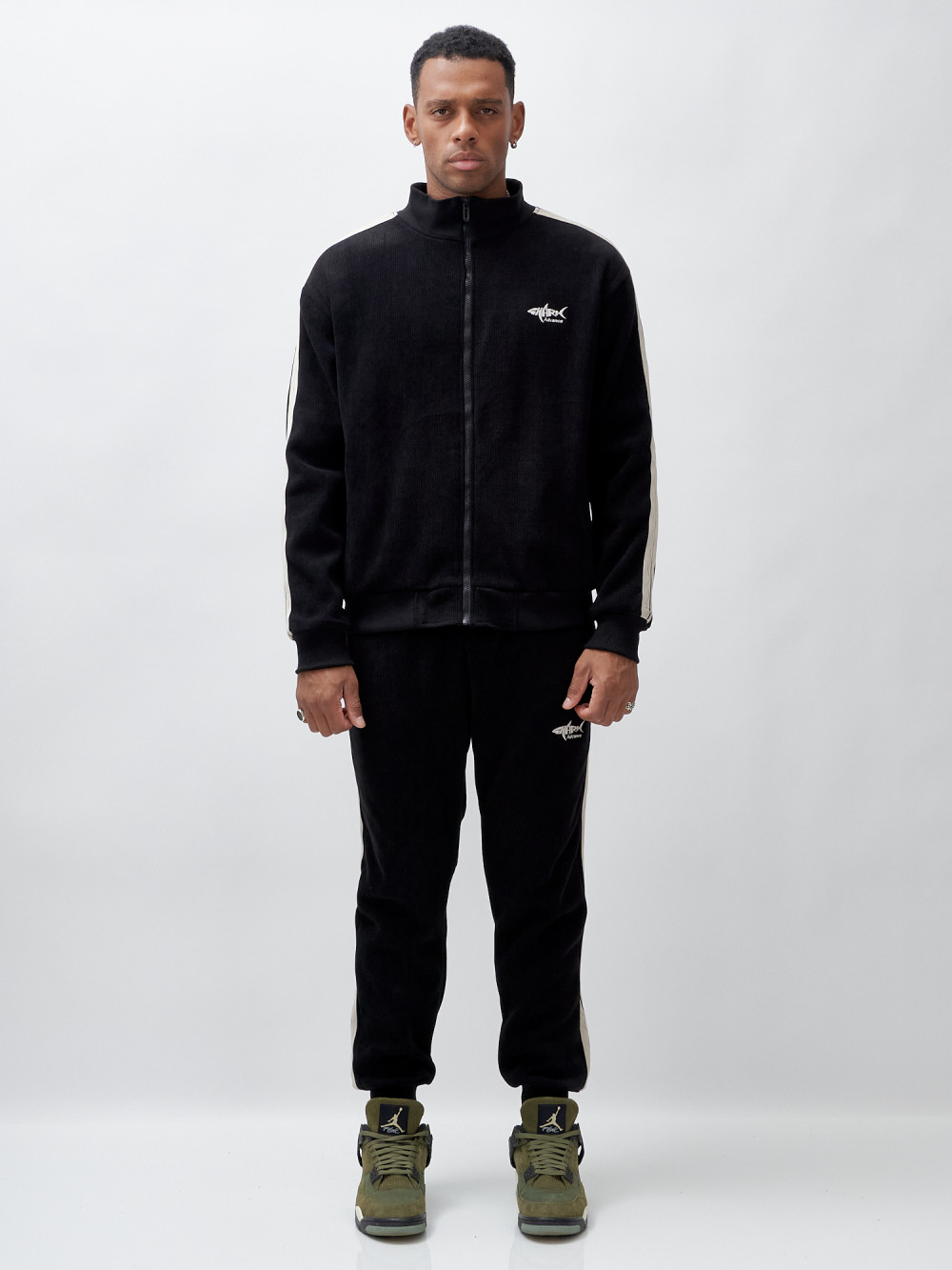 Спортивный костюм мужской демисезонный на флисе черного цвета 332Ch