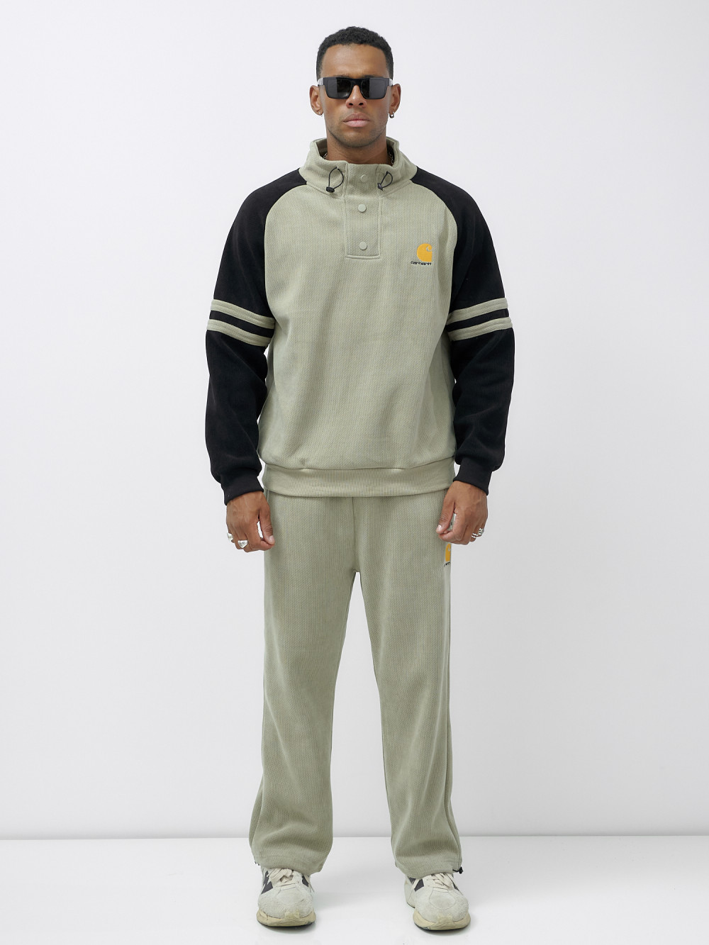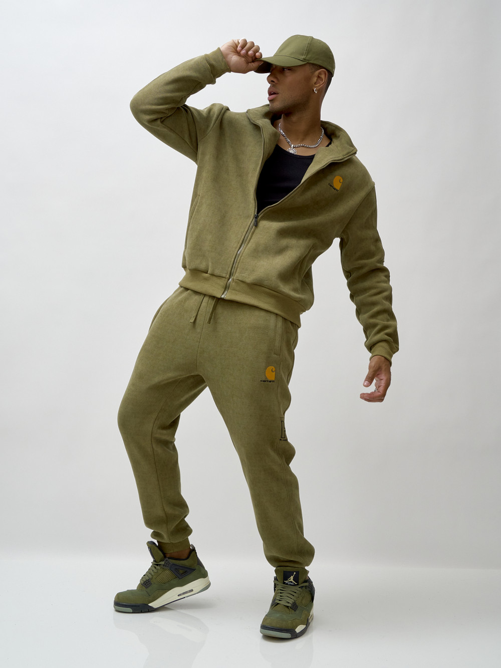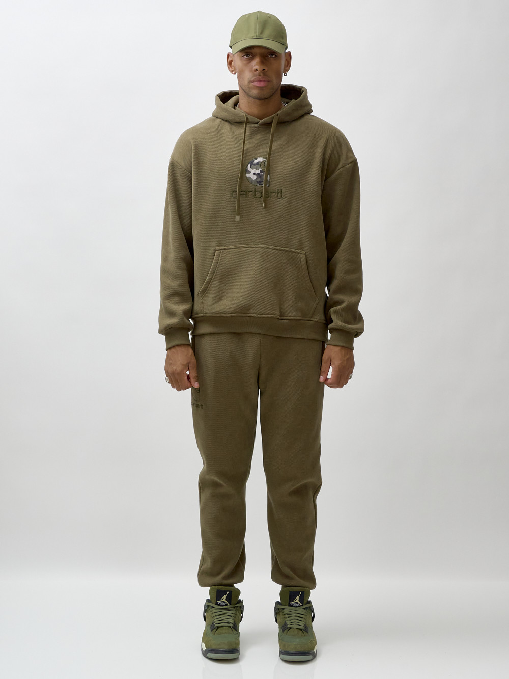 Спортивный костюм мужской демисезонный на флисе цвета хаки 332Kh