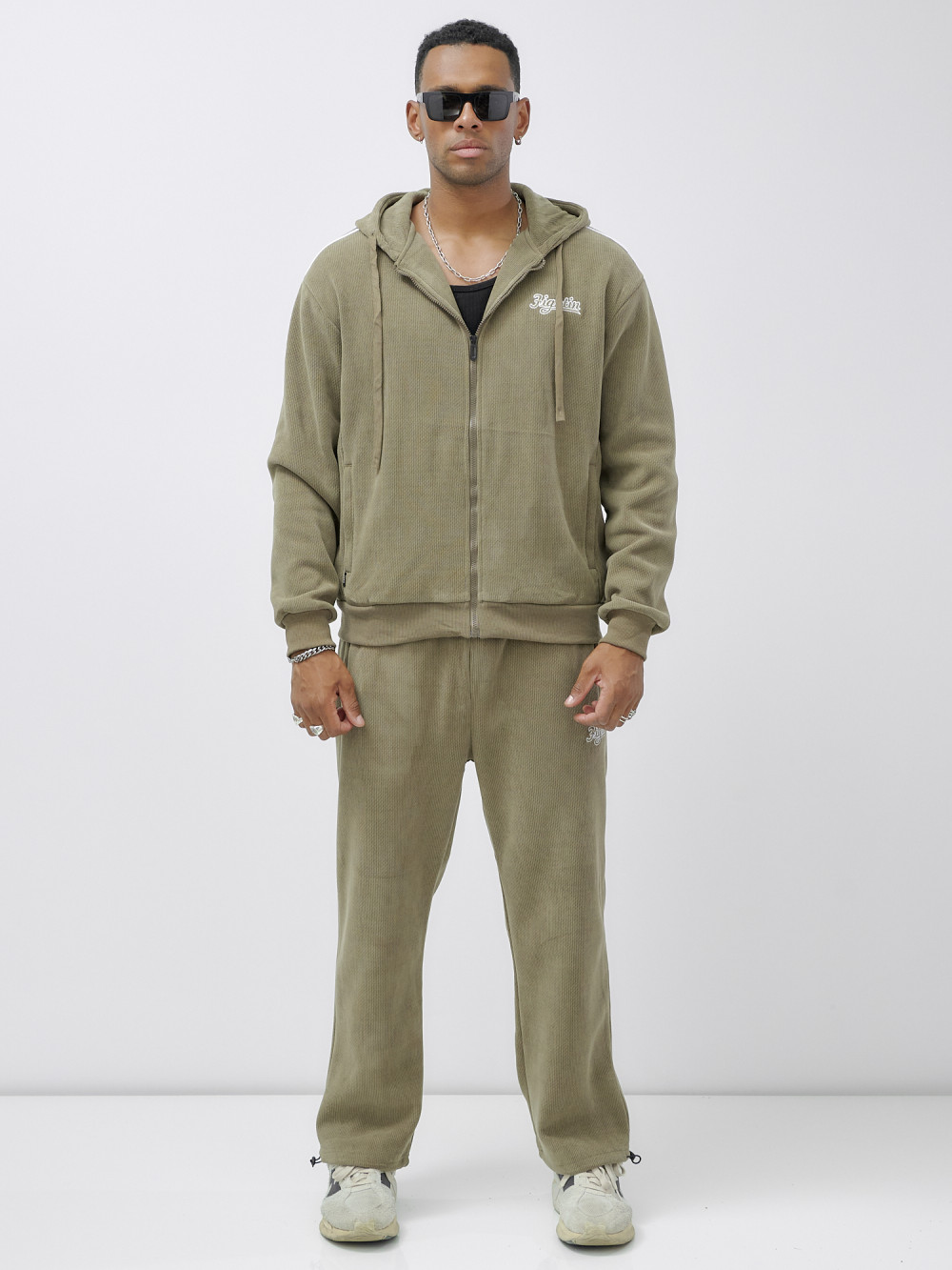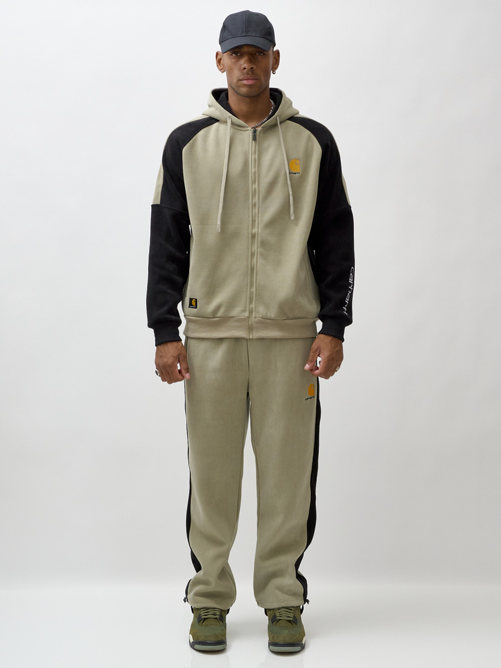 Спортивный костюм мужской демисезонный на флисе цвета хаки 330Kh