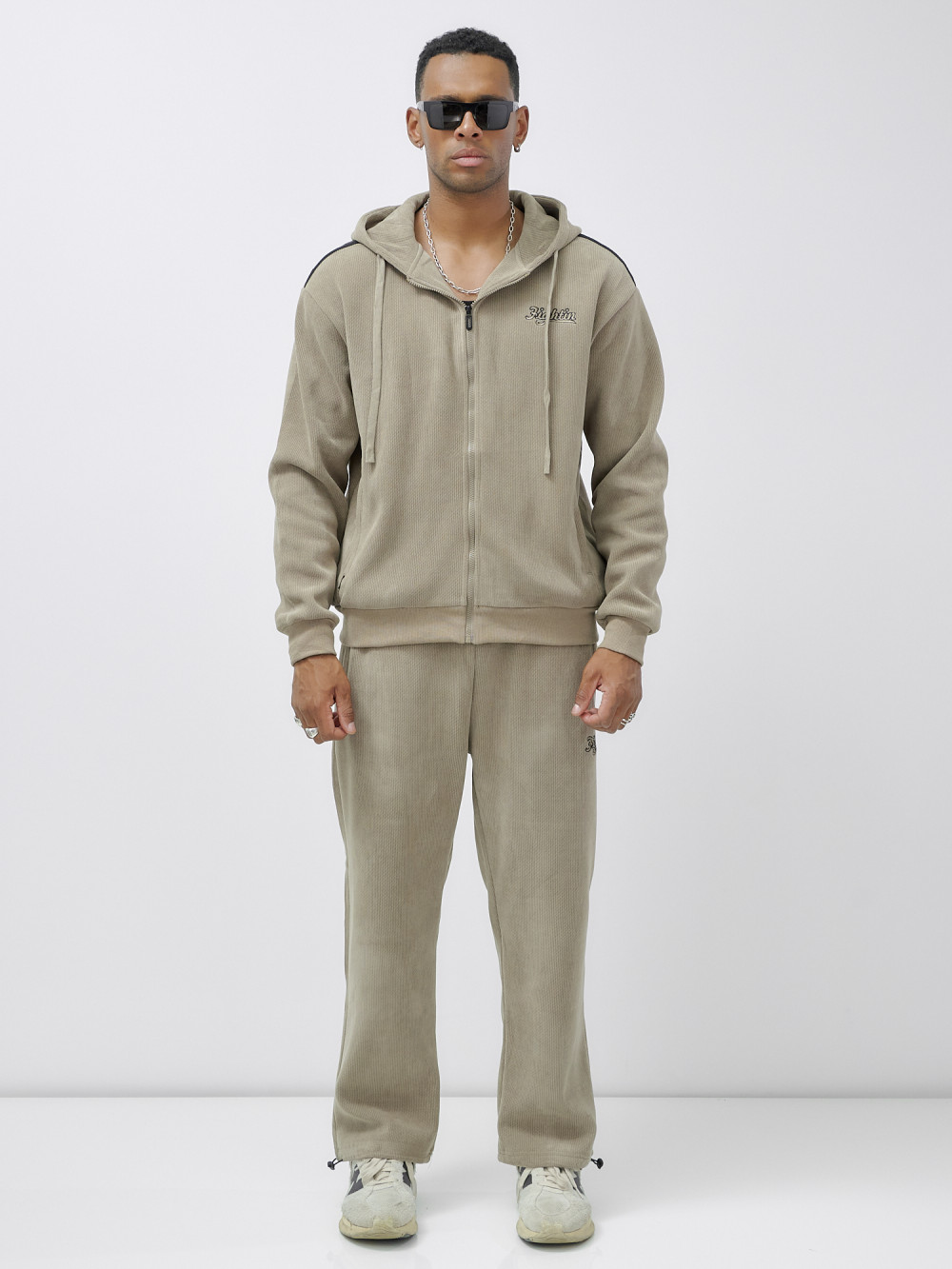 Спортивный костюм мужской демисезонный на флисе бежевого цвета 330B