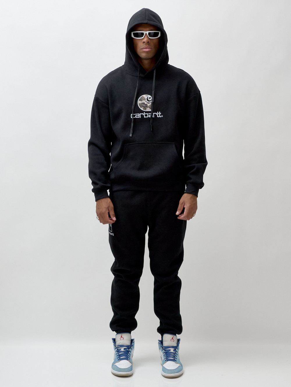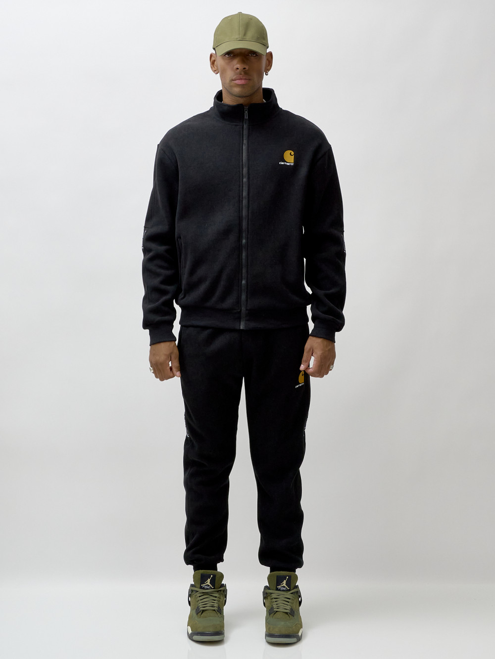 Спортивный костюм мужской демисезонный на флисе черного цвета 339Ch