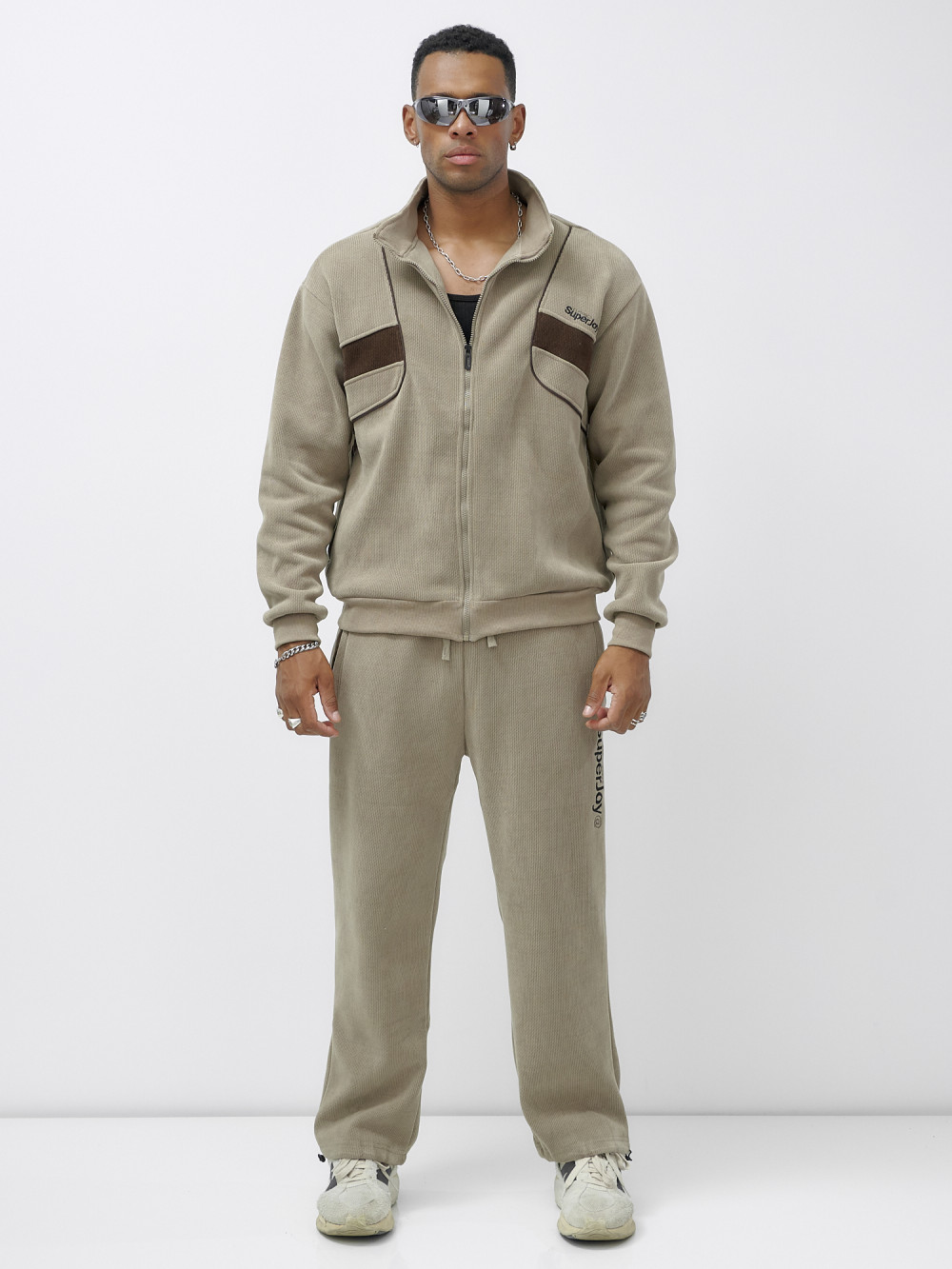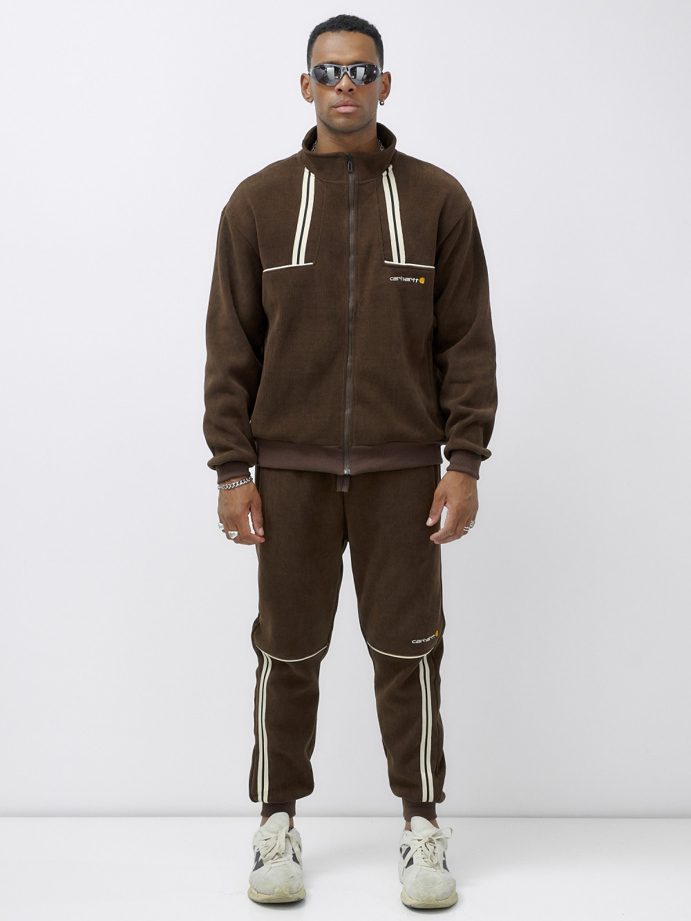 Спортивный костюм мужской демисезонный на флисе коричневого цвета 327K
