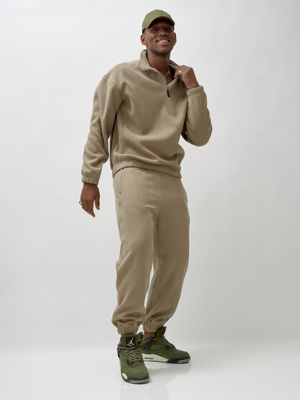 Спортивный костюм мужской демисезонный на флисе бежевого цвета 332B