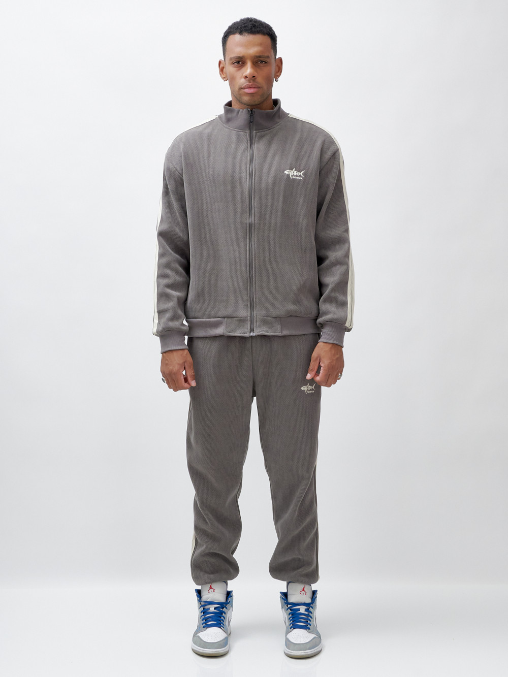 Спортивный костюм мужской демисезонный на флисе серого цвета 330Sr