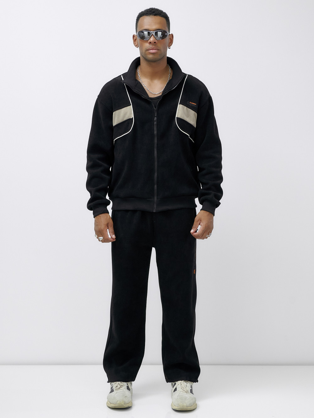 Спортивный костюм мужской демисезонный на флисе черного цвета 331Ch