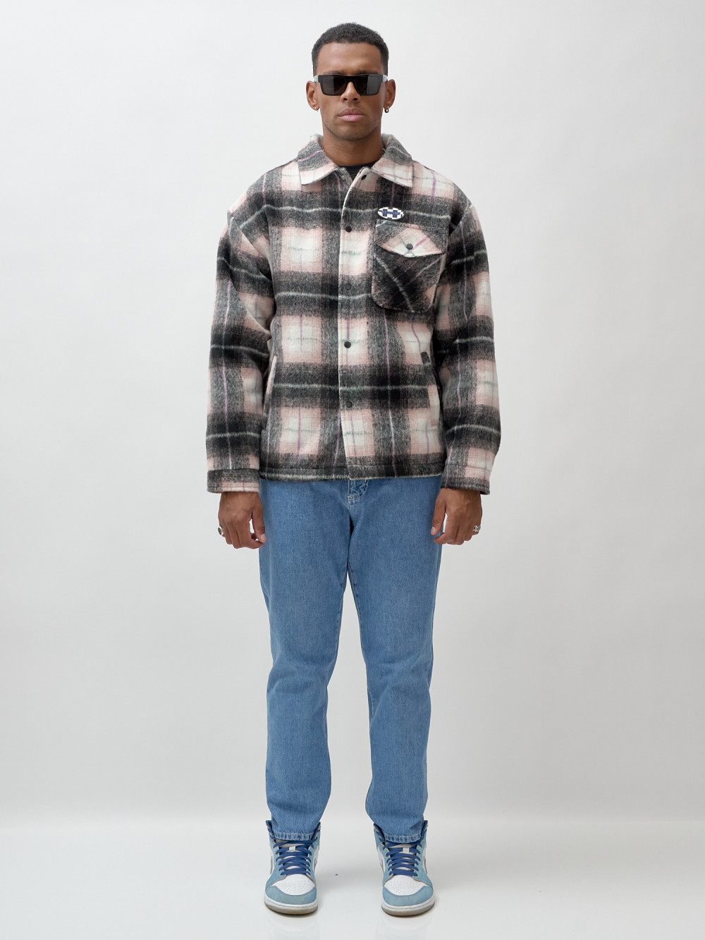 Куртка рубашка шерстяная в клетку мужская демисезонная бежевого цвета 58592B
