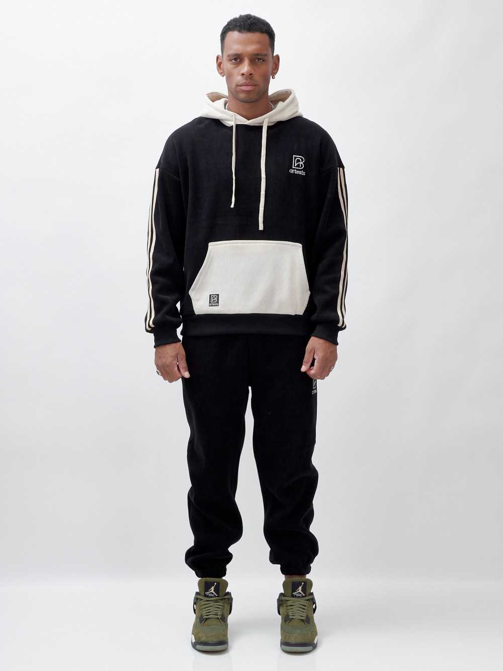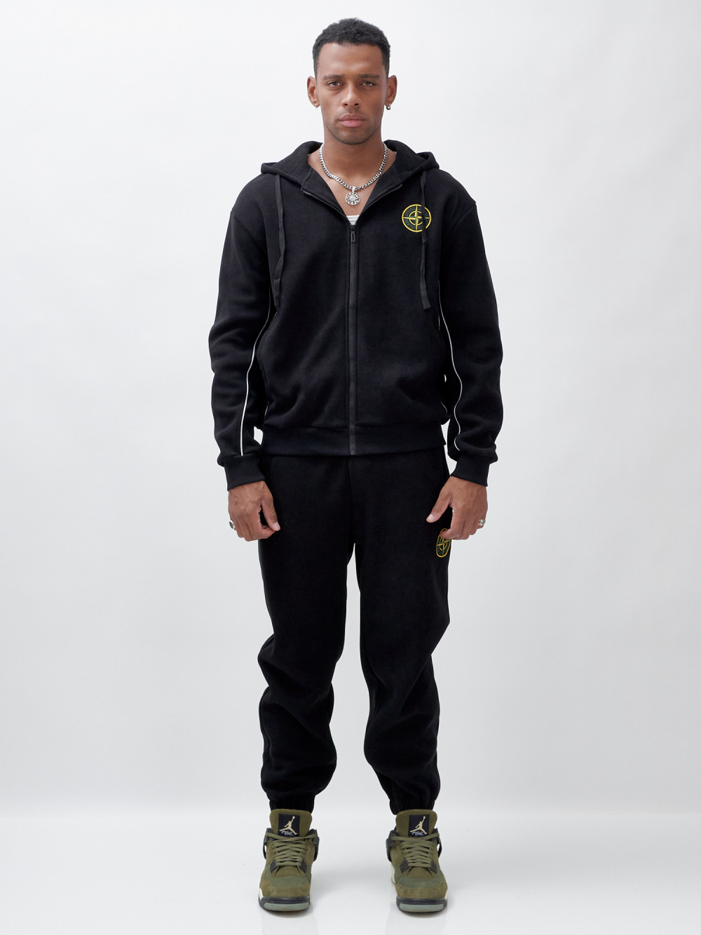 Спортивный костюм мужской демисезонный на флисе черного цвета 340Ch