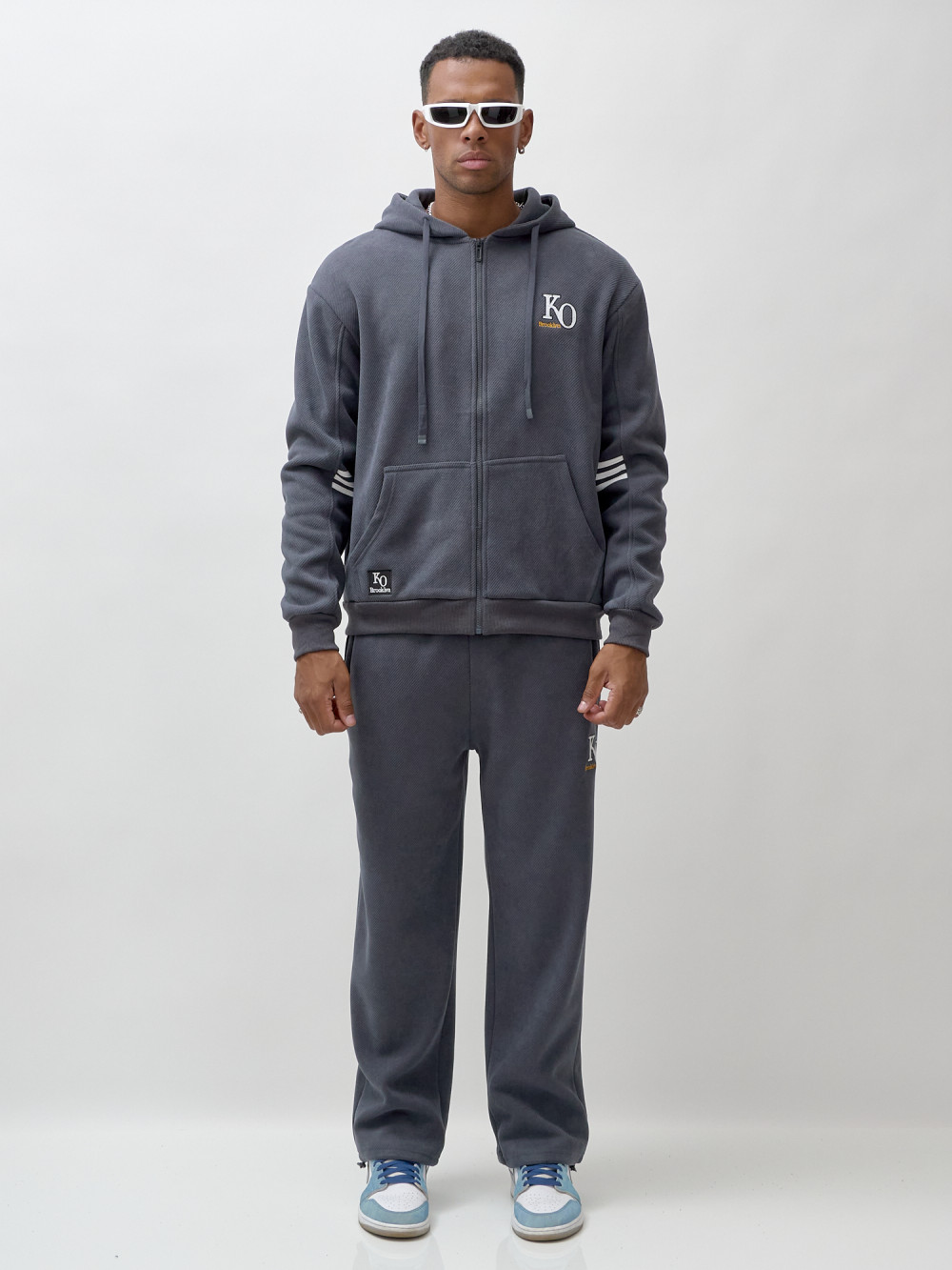 Спортивный костюм мужской демисезонный на флисе темно-серого цвета 336TC