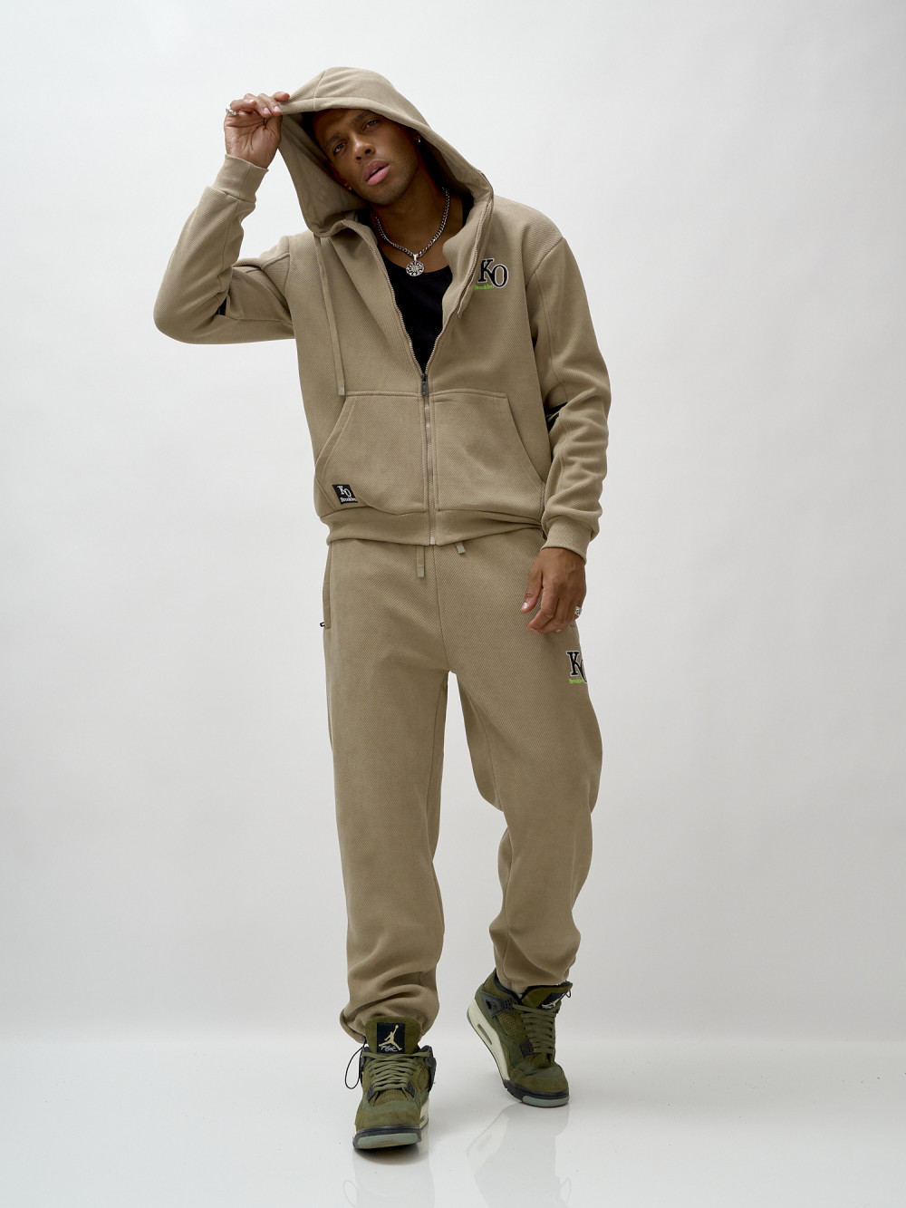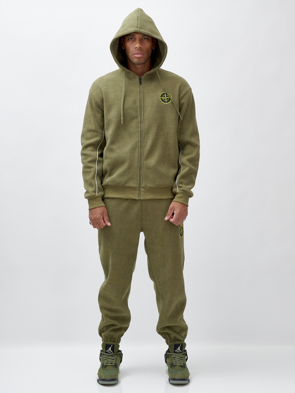 Спортивный костюм мужской демисезонный на флисе цвета хаки 340Kh