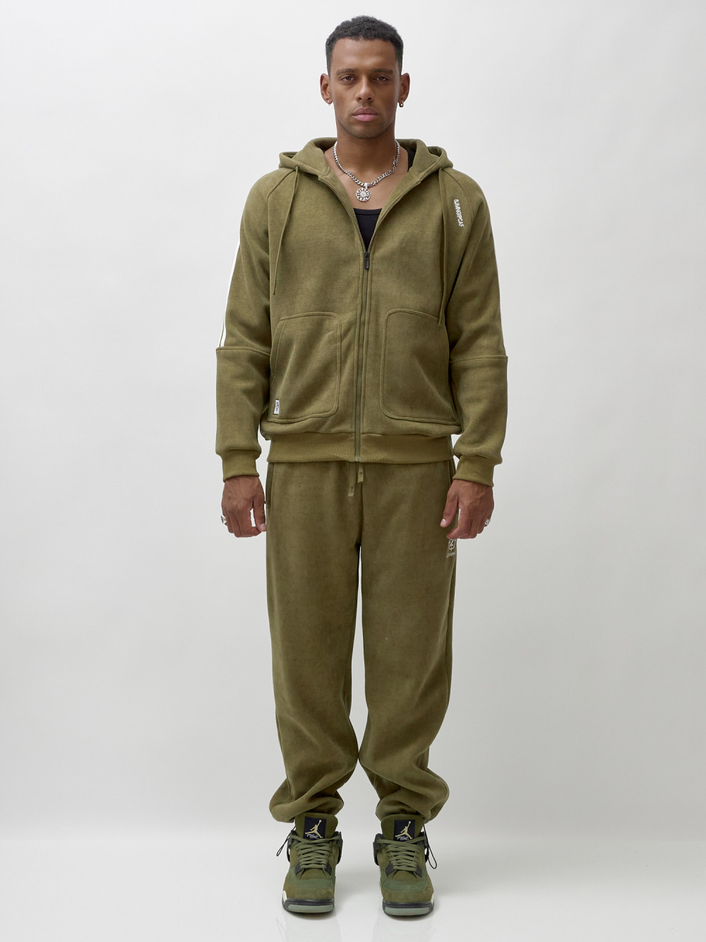 Спортивный костюм мужской демисезонный на флисе цвета хаки 341Kh