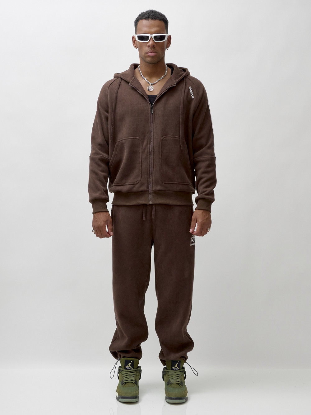Спортивный костюм мужской демисезонный на флисе коричневого цвета 340K