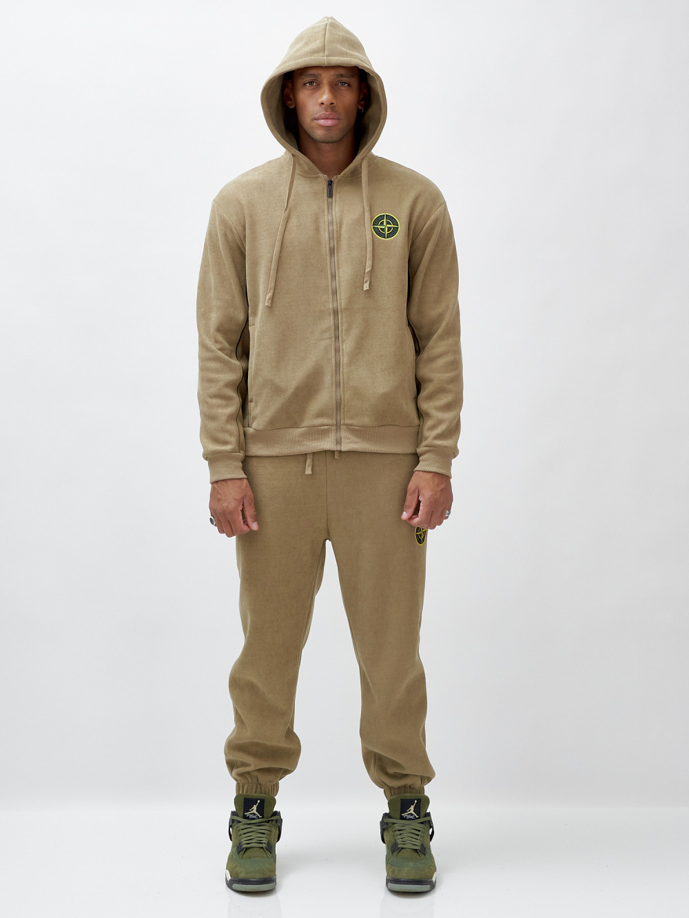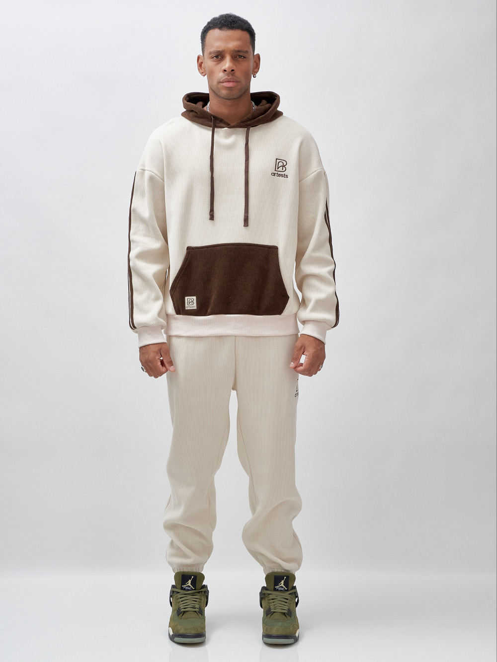 Спортивный костюм мужской демисезонный на флисе бежевого цвета 336B