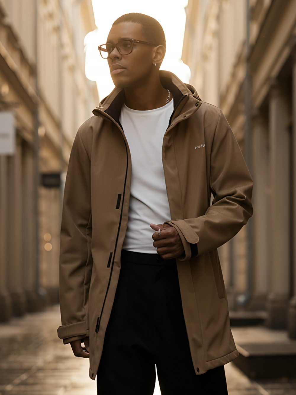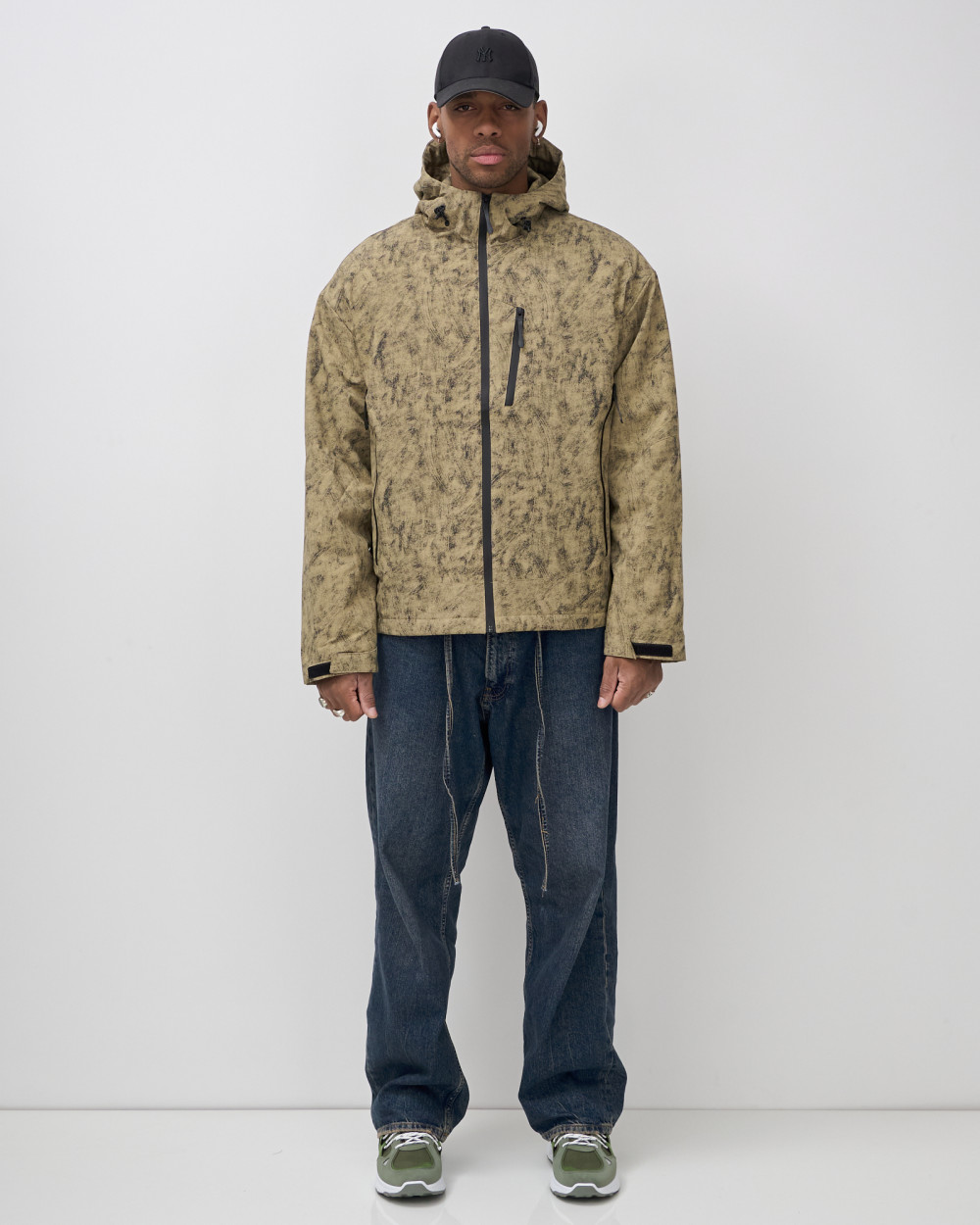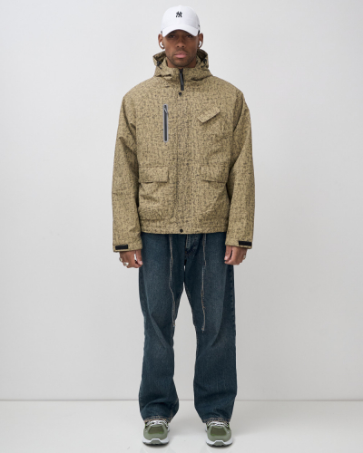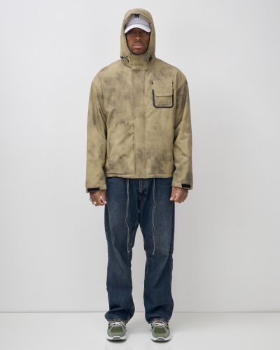 Парка спортивная мужская с капюшоном softshell бежевого цвета 9565B