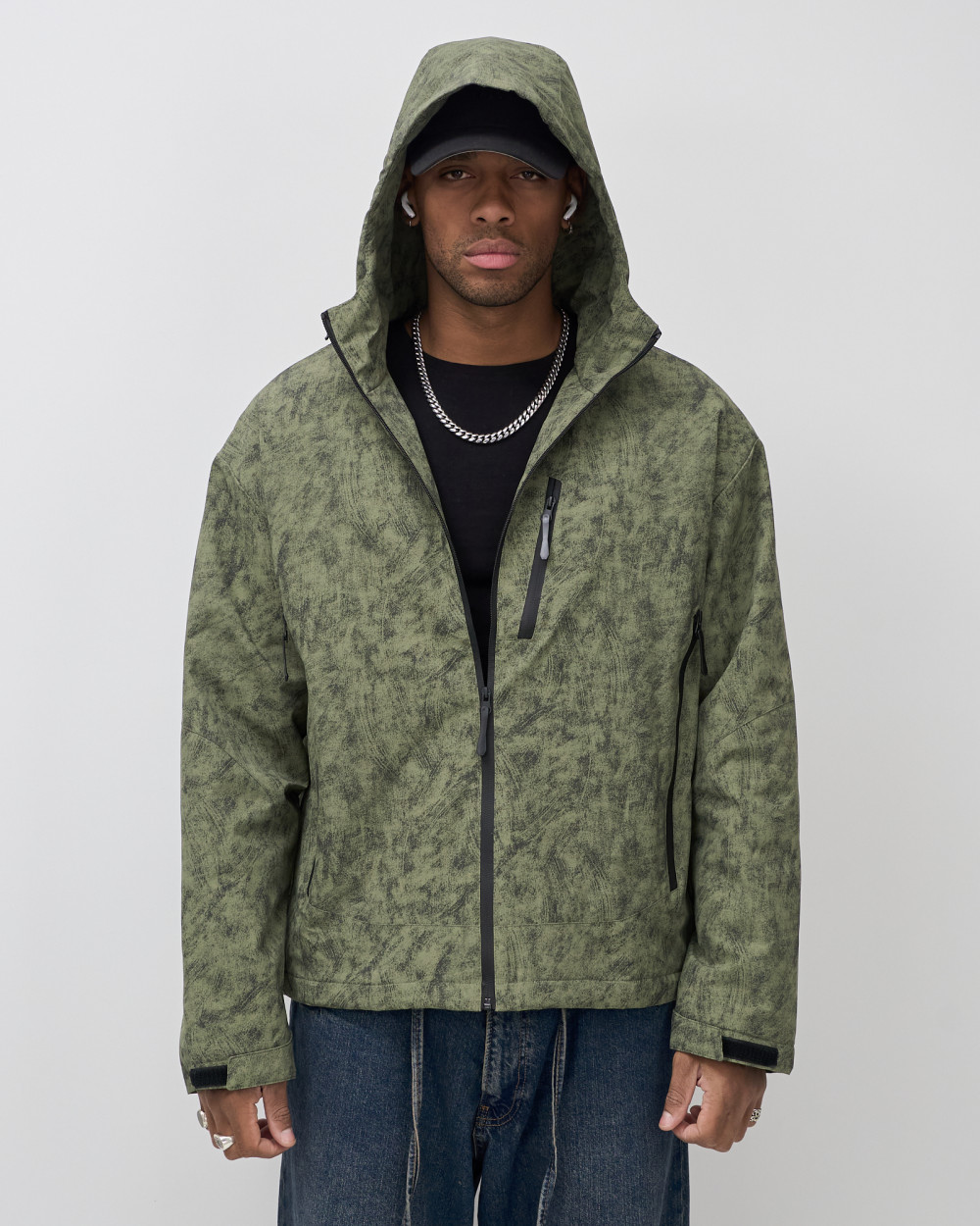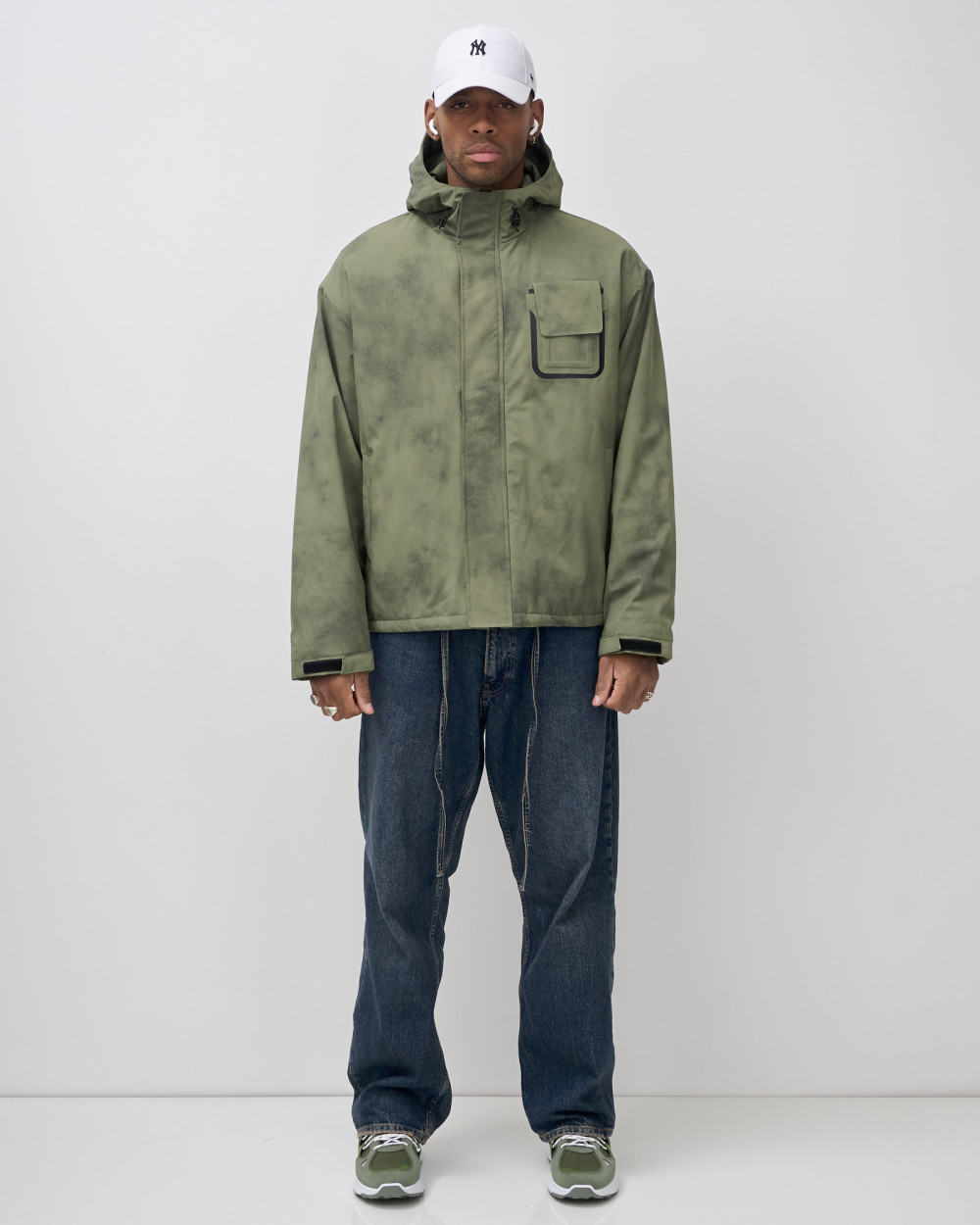Парка спортивная мужская с капюшоном softshell цвета хаки 9565Kh