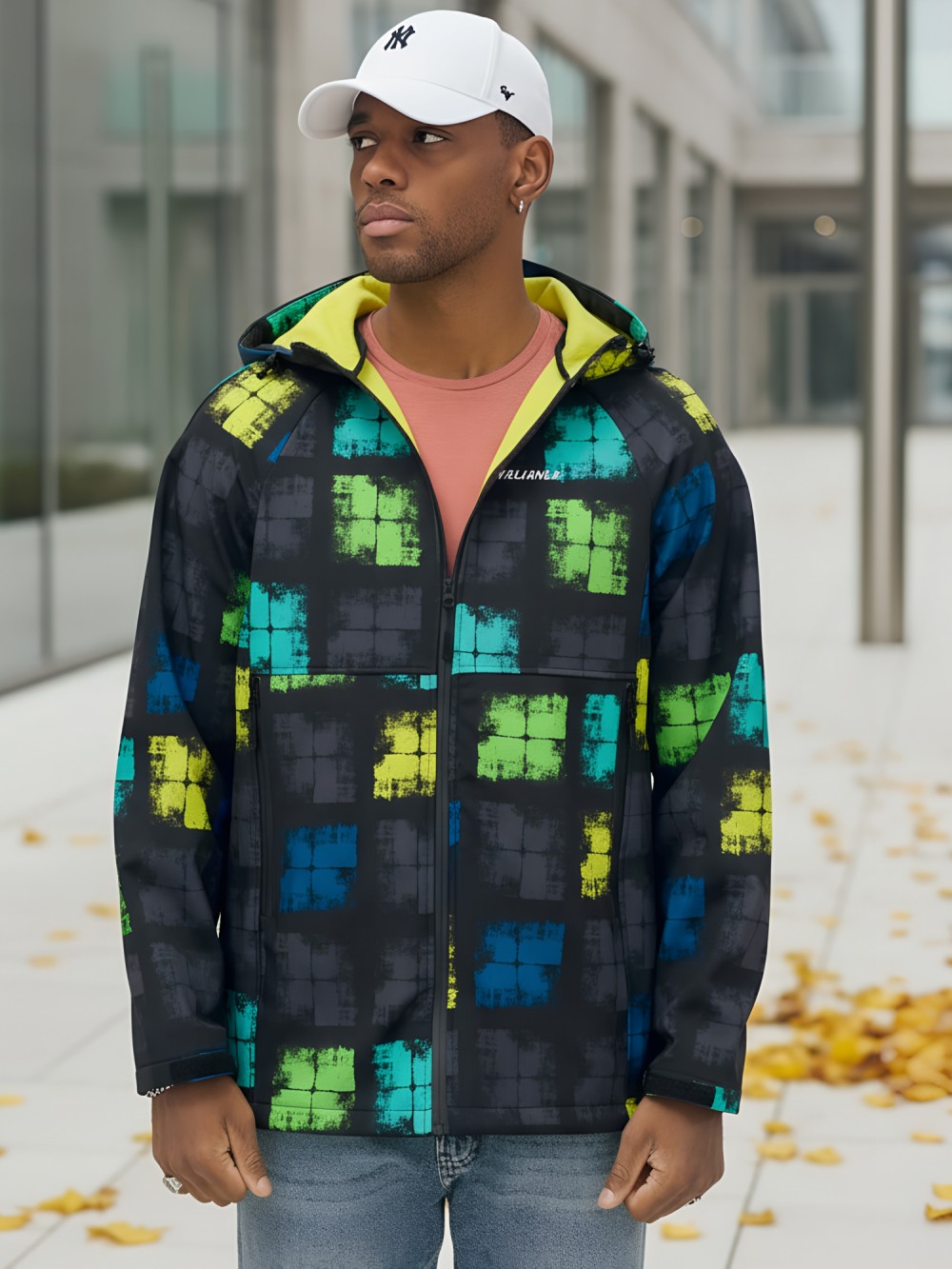 Ветровка спортивная мужская с капюшоном softshell желтого цвета 9563J