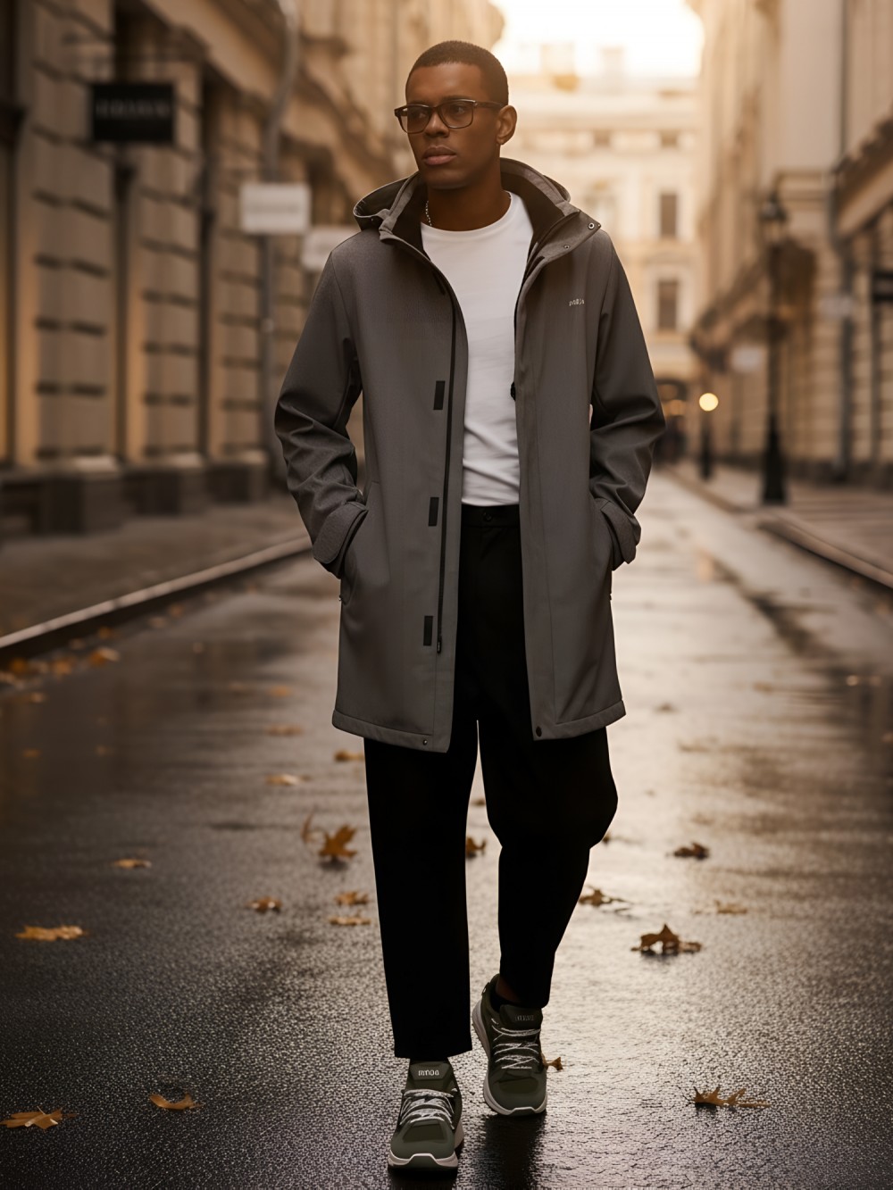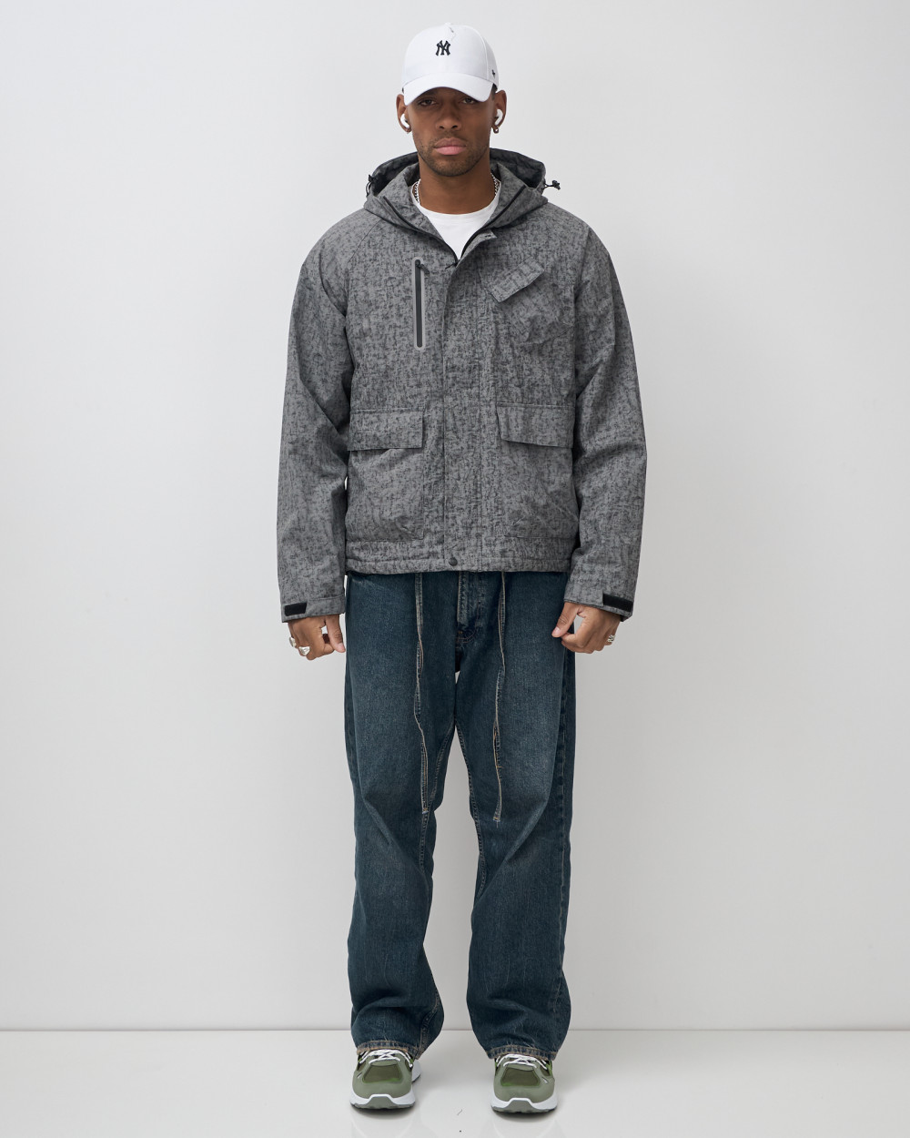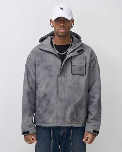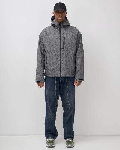 Парка спортивная мужская с капюшоном softshell серого цвета 9565Sr
