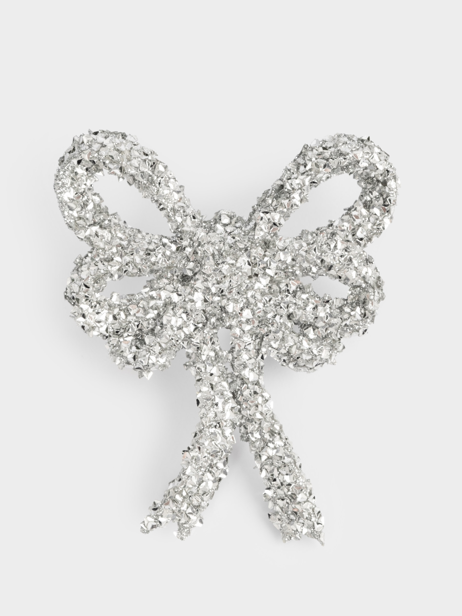 Украшение декоративное, 13 см, на клипсе, пластик, серебристое, Бант, New year