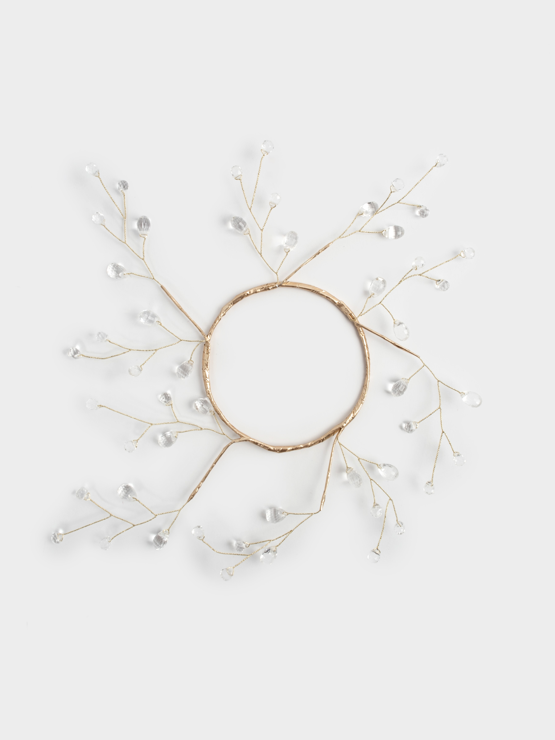 Венок декоративный, 10х20 см, для чайной свечи, акрил/металл, золотистый, Кристаллы, Event