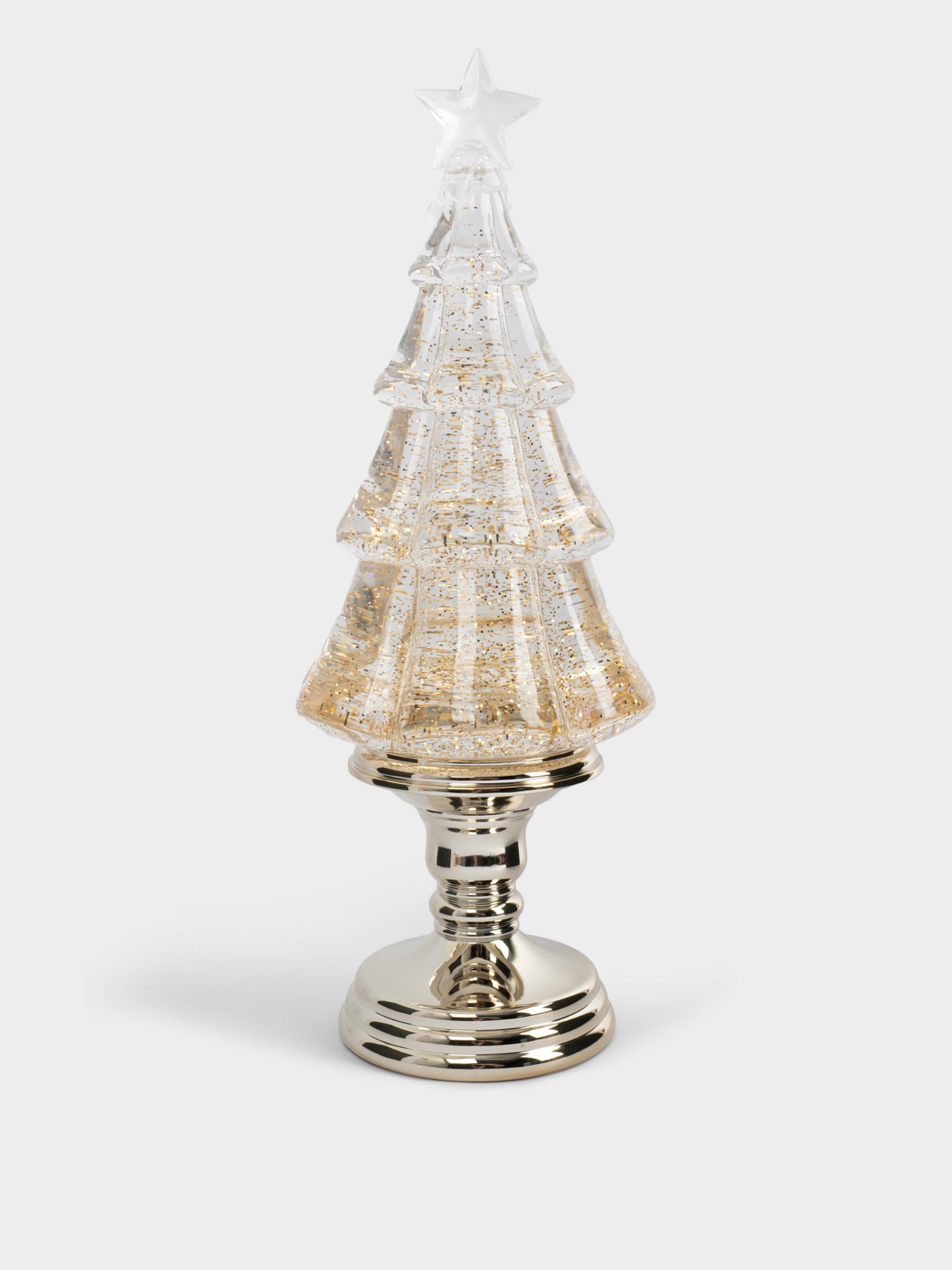 Снежный фонарь, 27 см, с подсветкой, акрил, серебристый, Ель с летающими блестками, Event