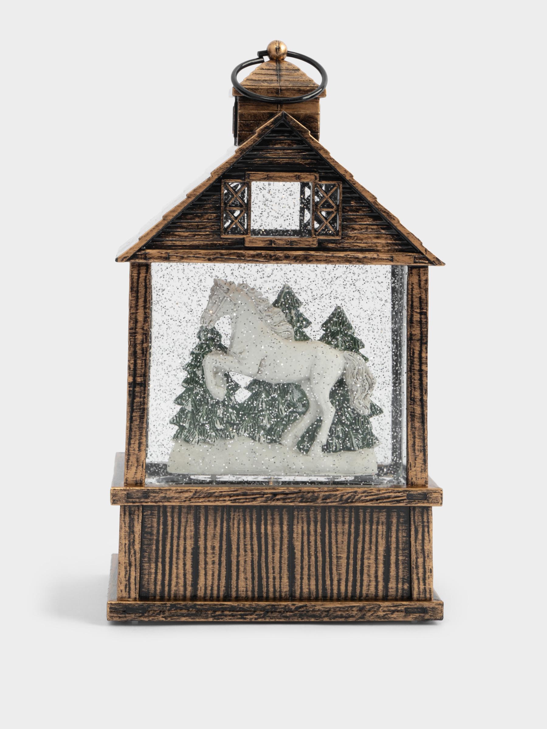 Снежный фонарь, 20 см, с подсветкой, пластик, белый, Лошадь под куполом, Horse