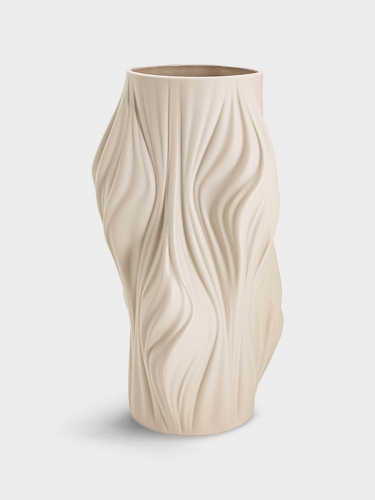 Ваза для цветов, 36 см, декоративная, фарфор P, серо-бежевая, матовая, Волны, Edit