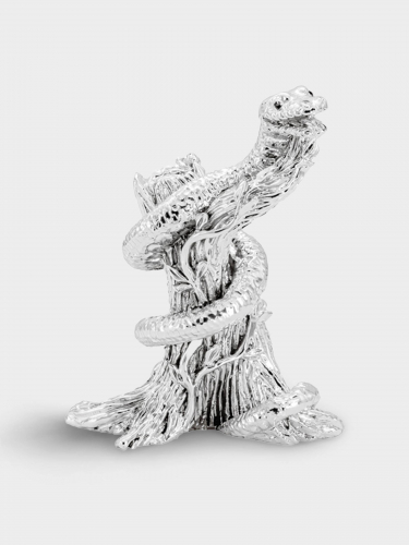 Статуэтка, 6 см, серебристая, Змея с монетами