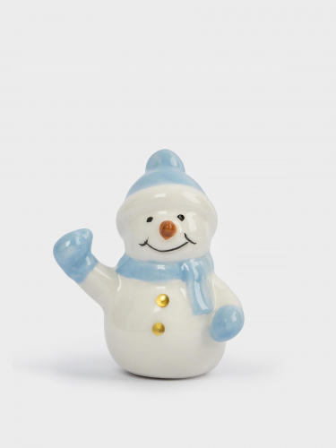 Статуэтка, 6 см, керамика, бело-голубая, Снеговик в шапке и шарфе, Snowman