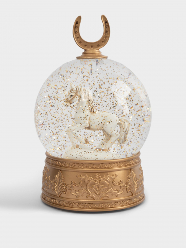 Снежный фонарь, 18 см, с подсветкой, пластик, золотистый, Лошадь в шаре, Horse