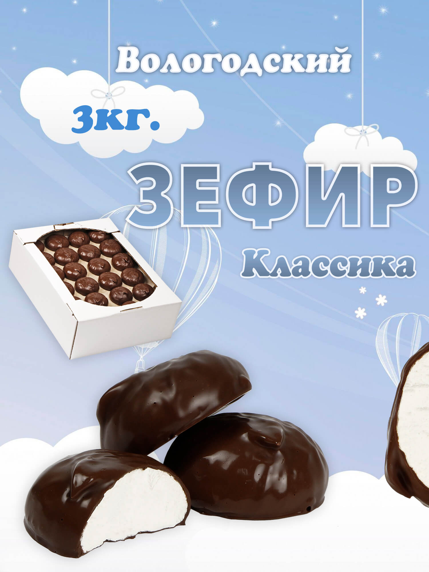 Зефир Вологодский в шоколаде Классика 250гр.