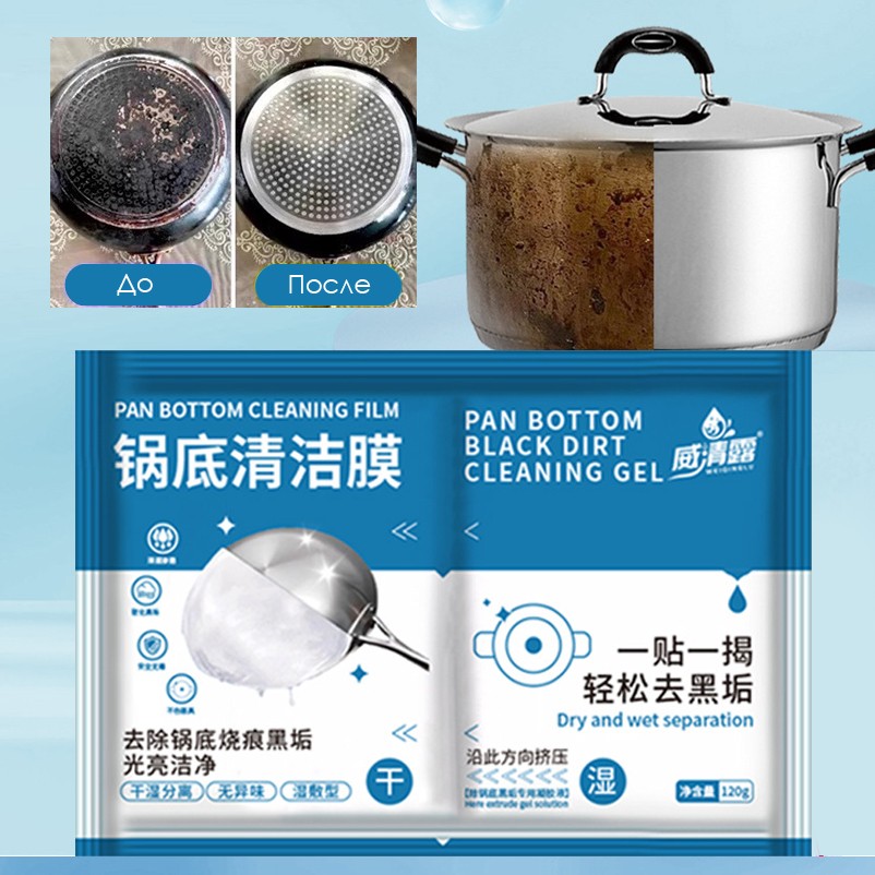 Средство для удаления въевшейся грязи и нагара для кастрюль и сковородок, 120 гр. Жидкость + Салфетка