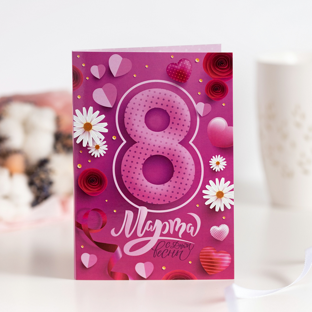 Открытка 4 шоколадки "8 марта, с днем весны (ярко-розовая)"